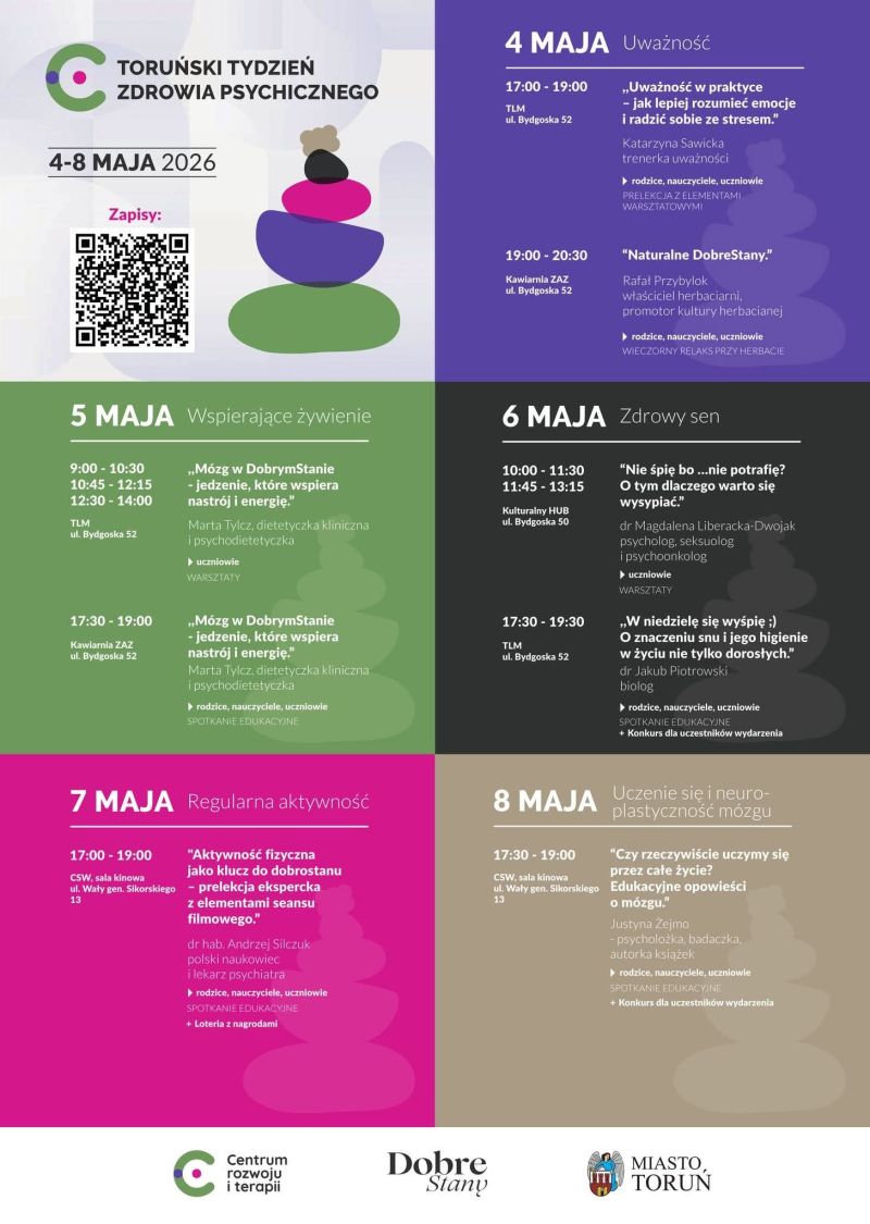 Toruński Tydzień Zdrowia Psychicznego w dniach 4-8 maja 2026.