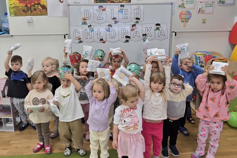 Dnia 30 września obchodziliśmy Dzień Chłopaka 👦💙Nasi chłopcy przygotowali maski superbohaterów, dziewczynki zaśpiewały gromkie „Sto lat” a na koniec wszystkie nasze Żabki otrzymały prezenty.