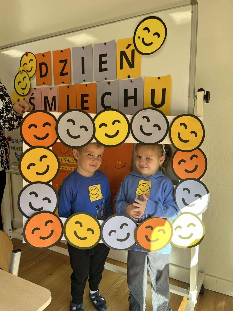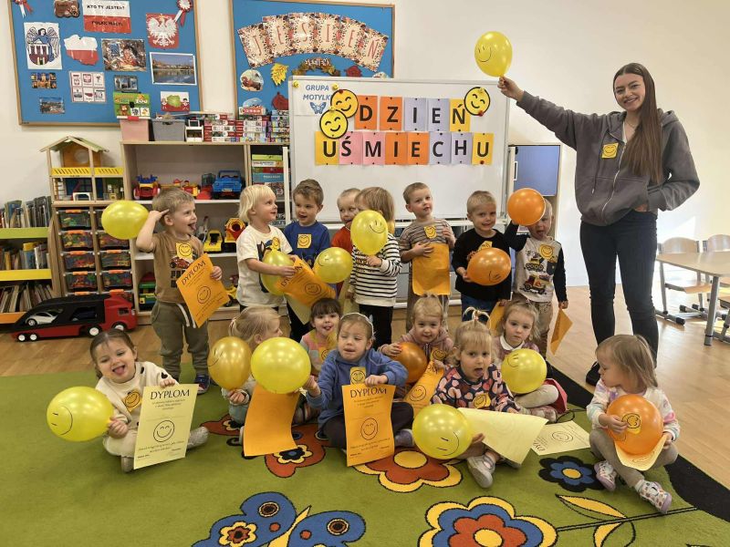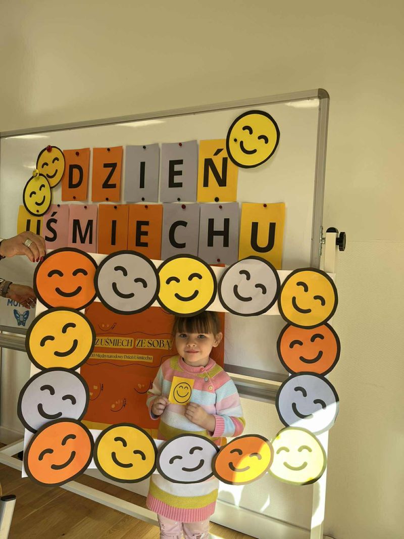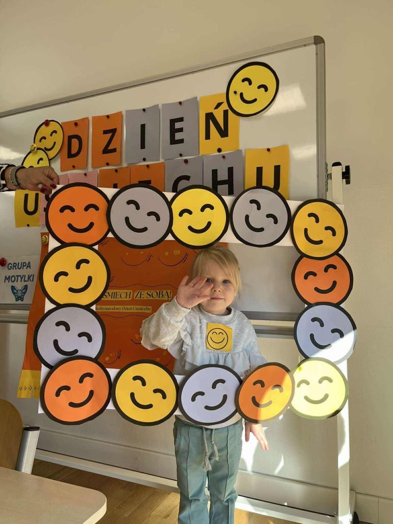 Obchodziliśmy w grupie Dzień Uśmiechu :) Dzieci uczestniczyły w zabawach, tańcach oraz konkurencjach, które wywowływały mnóstwo śmiechu i dobrej energii. Były również zabawy integracyjne, a także rozmowy o naszych emocjach i o tym, jak ważny jest uśmiech. To właśnie on potrafi rozświetlić nawet najbardziej pochmurny dzień. Uśmiech nic nie kosztuje, a daje tak wiele! :)