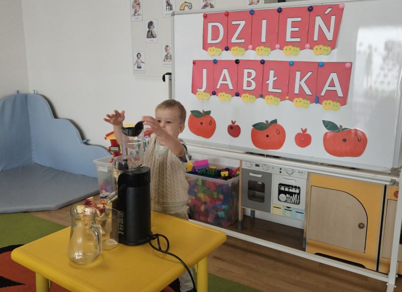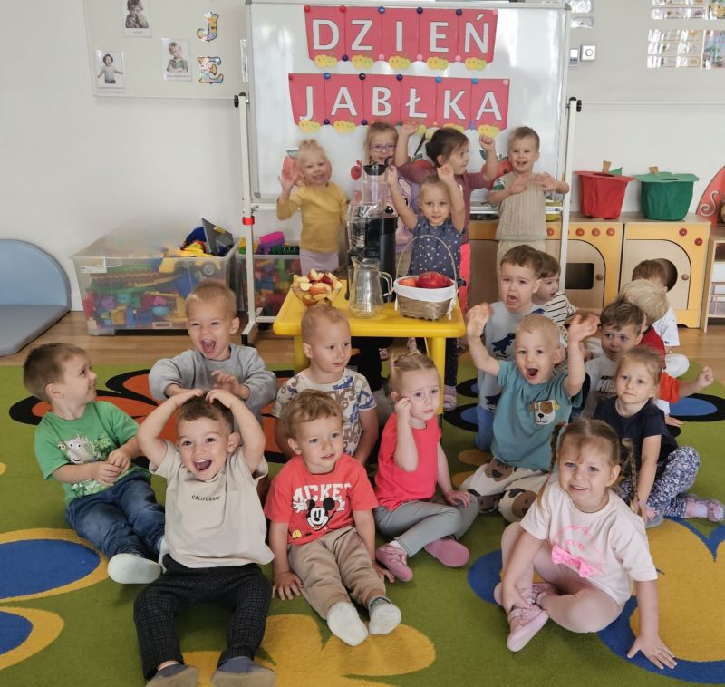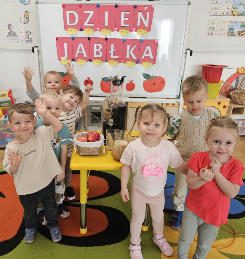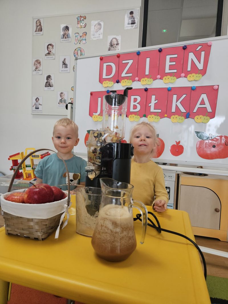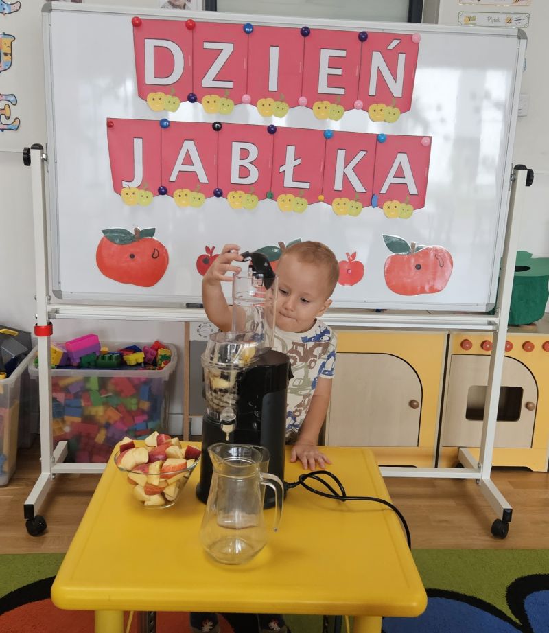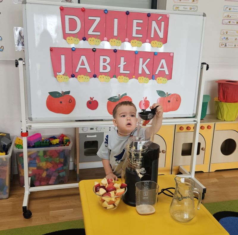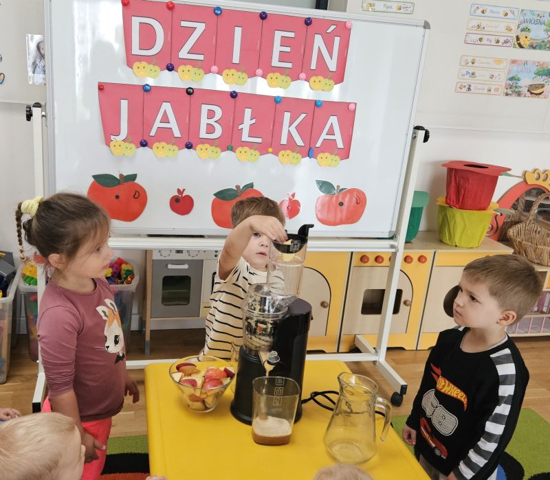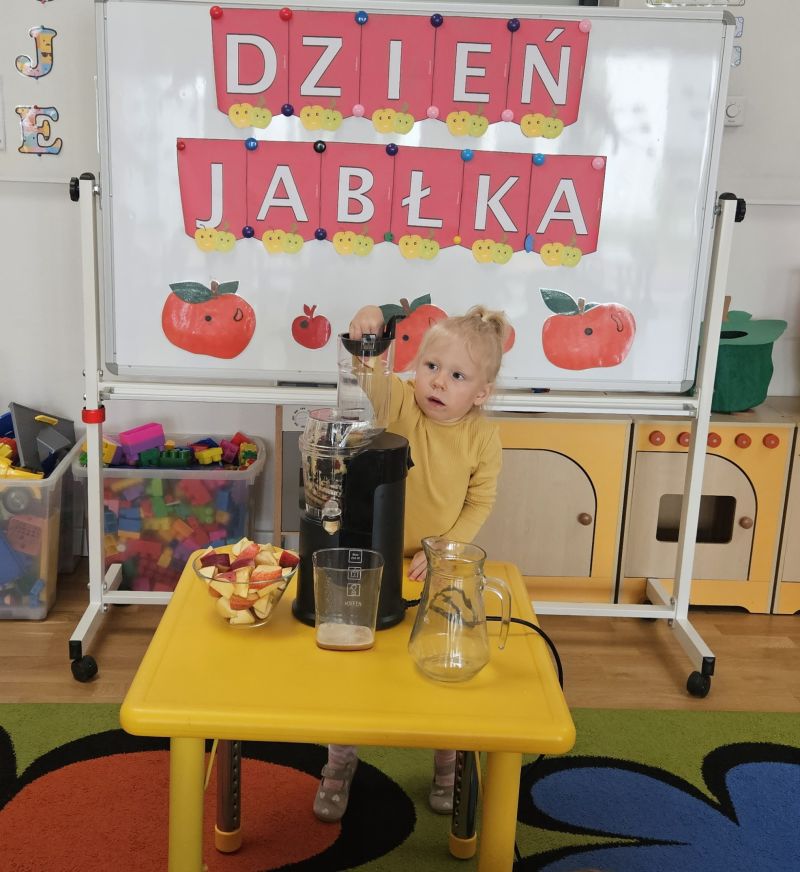Tego dnia w naszym przedszkolu odbywały się najróżniejsze zabawy z jabłkiem w roli głównej. Na zakończenie dzieci wspólnie przygotowały pyszny, zdrowy sok jabłkowy! 🍎