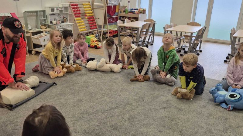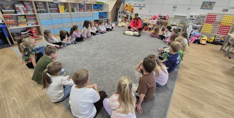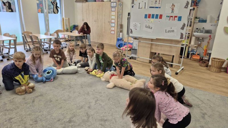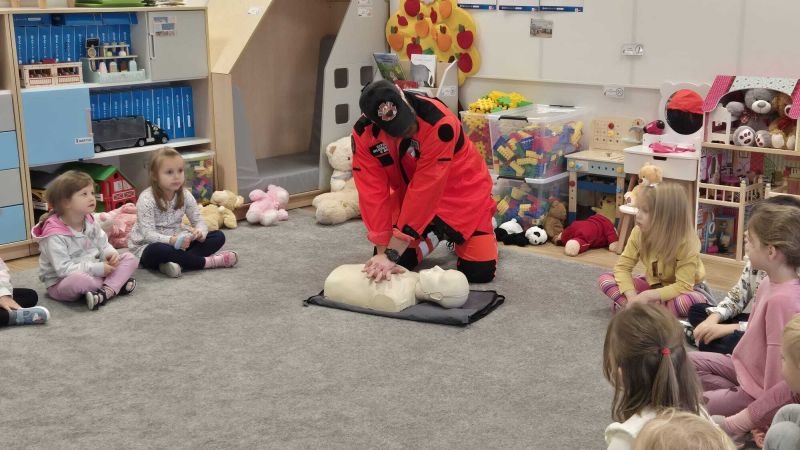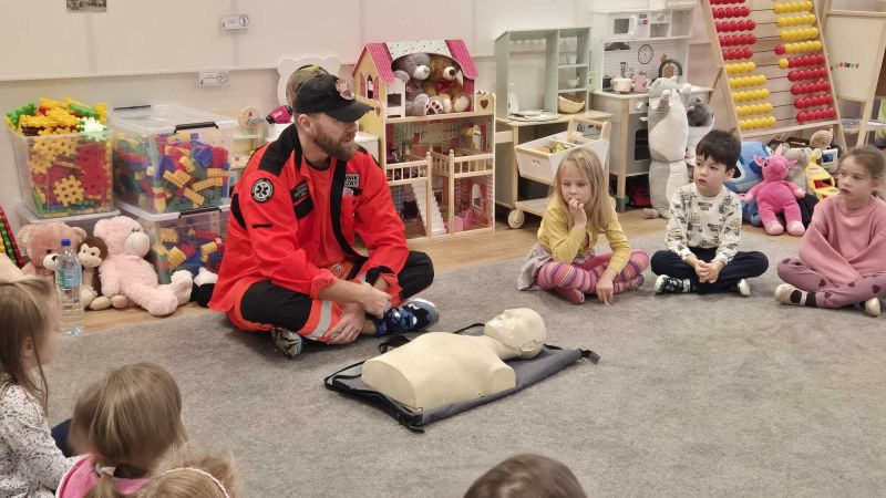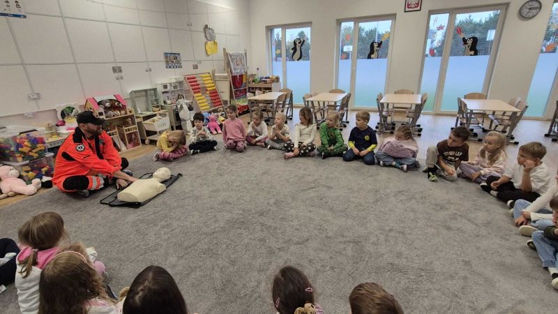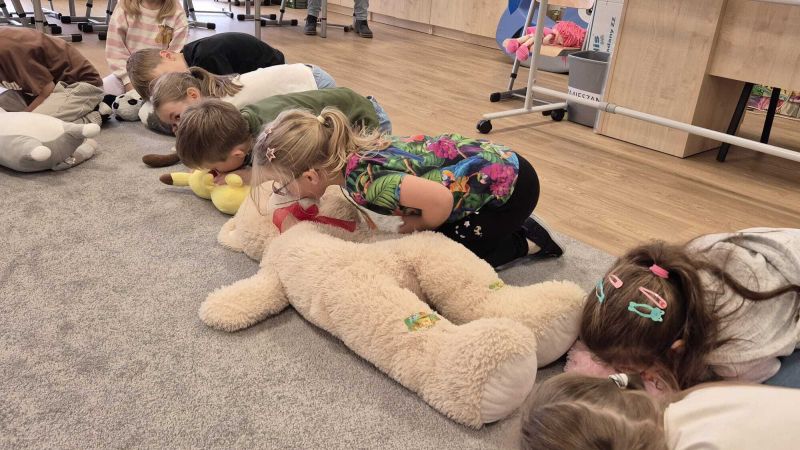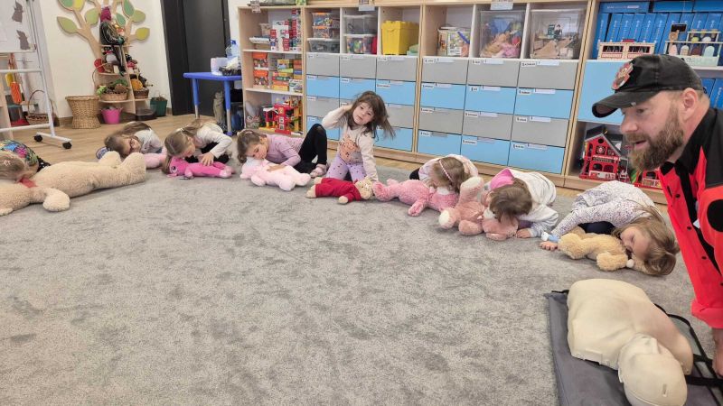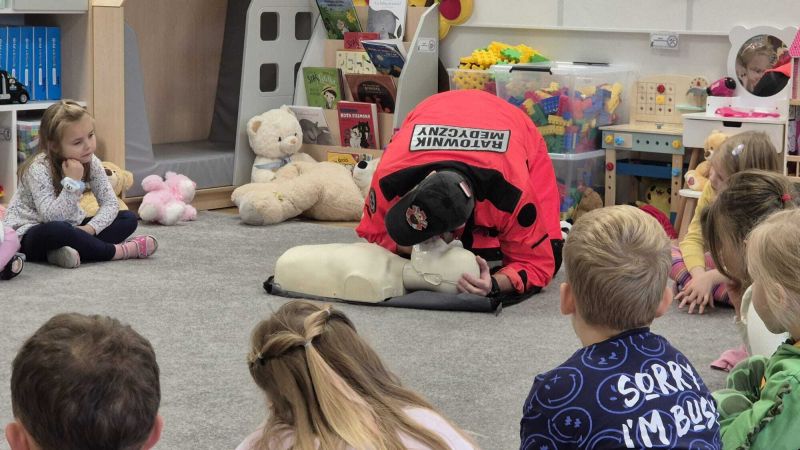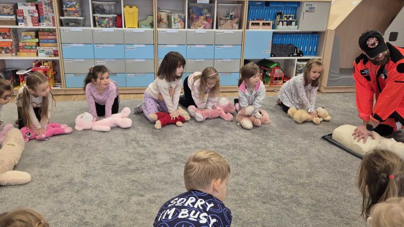 Dzieci z grupy Kreciki wzięły udział w zajęciach z pierwszej pomocy z ratownikiem medycznym.