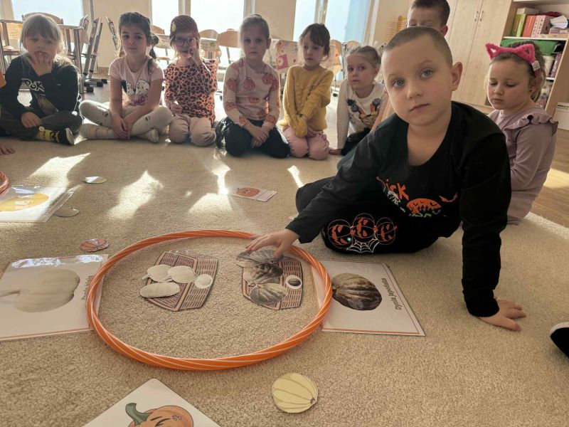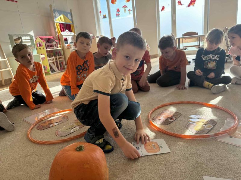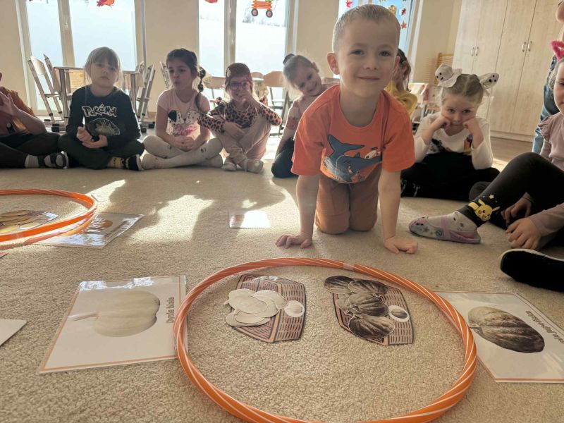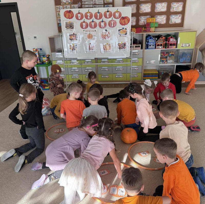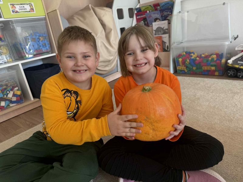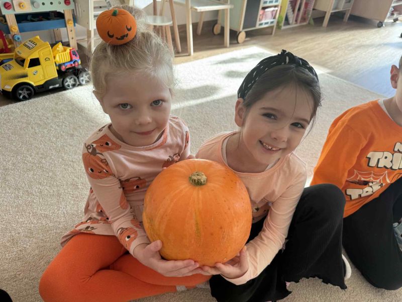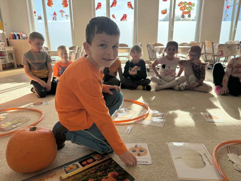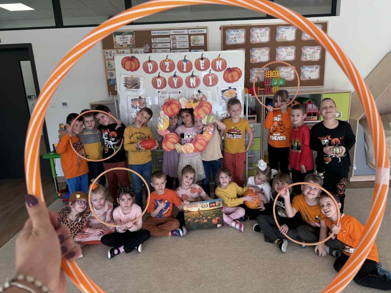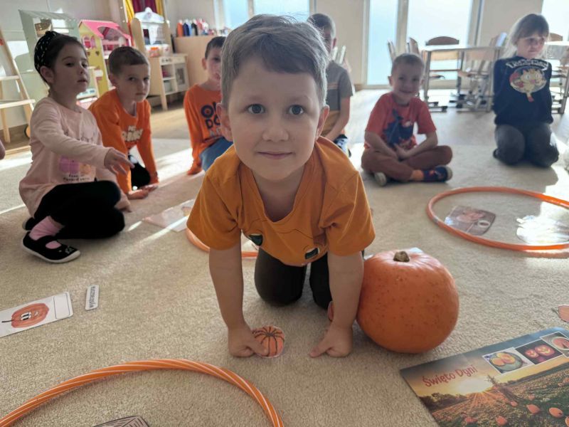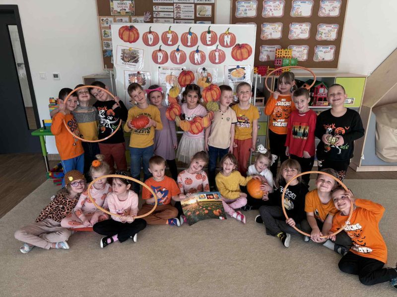 Świętowaliśmy Dzień Dyni – dowiedzielismy się skąd pochodzi dyni, poznaliśmy jej rodzaje oraz do czego możemy ją wykorzystać i dlaczego warto ją jeść. Było także dyniowe rymowanie, dyniowe zagadki i oczywiście mnóstwo zabawy i uśmiechów!