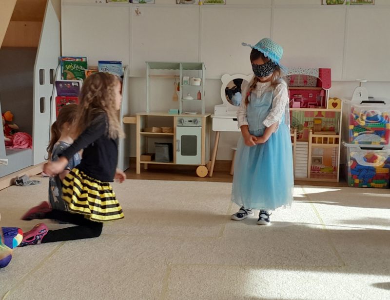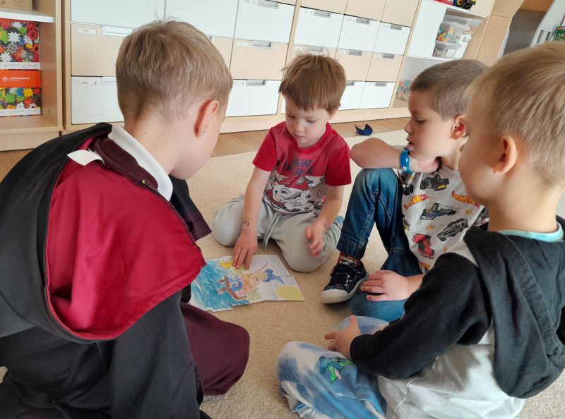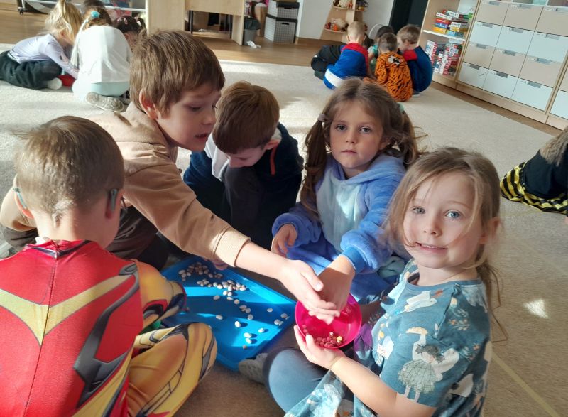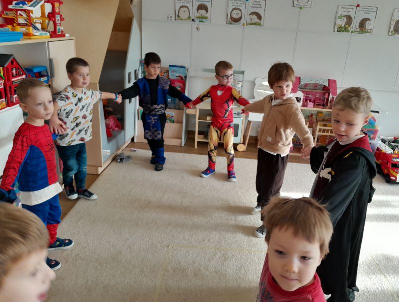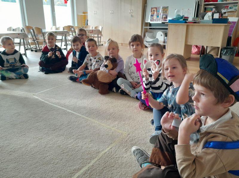 Tego dnia mogliśmy się przebrać oraz przynieść rekwizyt, z którym kojarzy się nam dana bajka. Układaliśmy puzzle, sudoku, przebieraliśmy ziarna fasoli i ciecierzycy. Podjęliśmy też próby przejścia ścieżki z zasłoniętymi oczami jako krasnal lub księżniczka.