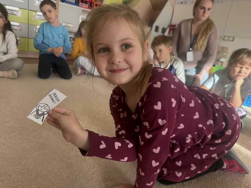 Uśmiech, dobre słowo, pomocna dłoń — nic nie kosztują, a potrafią zmienić czyjś dzień, a czasem nawet życie. Dzisiaj do Naszej grupy przyszła namłodsz grupa przedszkolaków "Żabki" i podzieliły się z Nami miłym słowem i gestem.