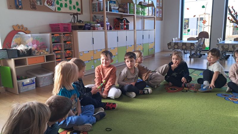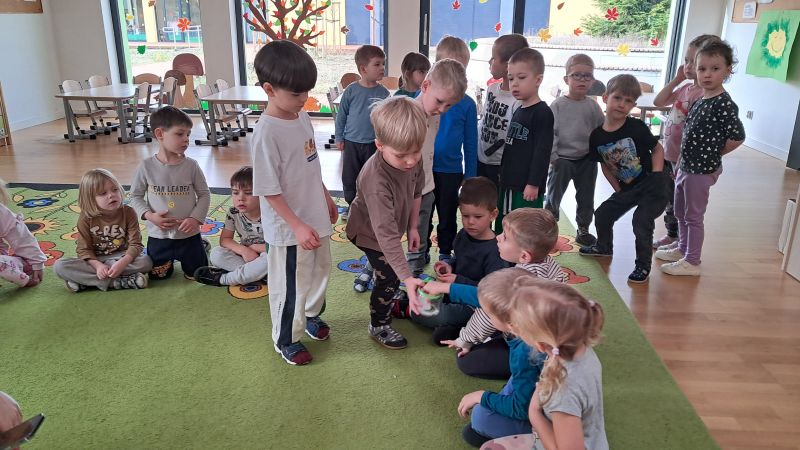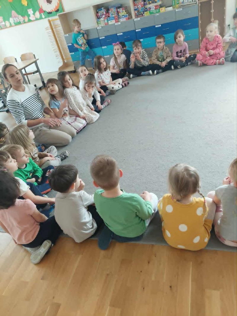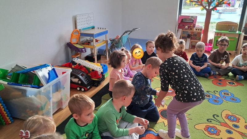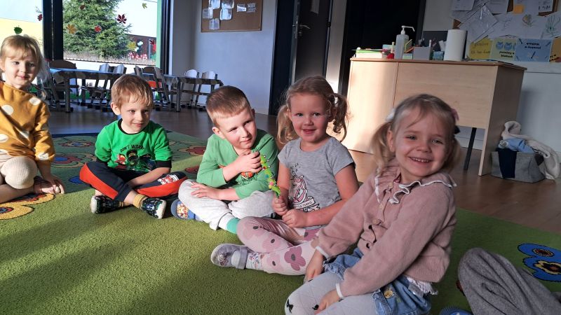 Dzień życzliwości i pozdrowień. Pracowaliśmy z "Magiczną kredką", która przekazuje tylko miłe, życzliwe słowa. Odwiedziliśmy grupę Ważki by podzielić się miłym słowem i zabawą. Nas odwiedziły dzieci z grupy z Wiewiórki.