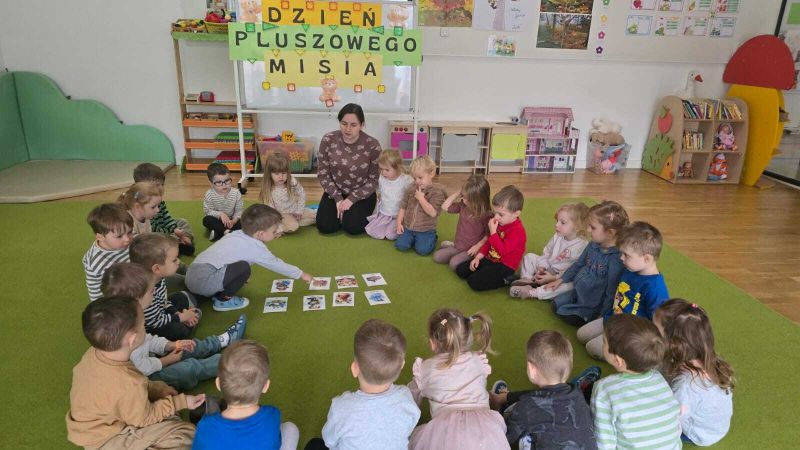25 listopada obchodziliśmy Dzień Pluszowego Misia. Rozmawialiśmy o ulubionych pluszakach dzieci oraz poznawaliśmy różne znane misie z bajek i literatury. Wykonaliśmy również prace plastyczne.