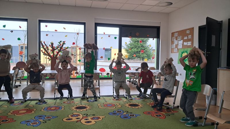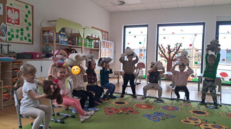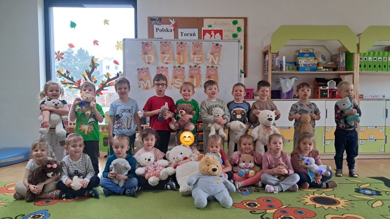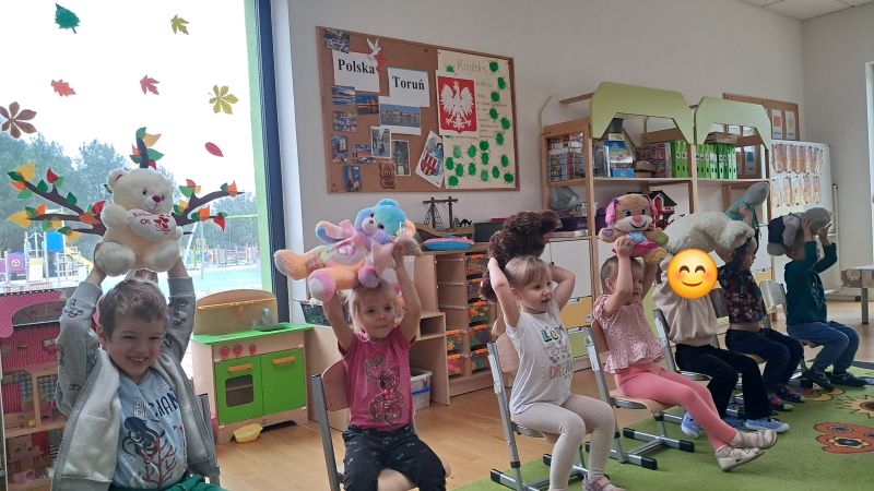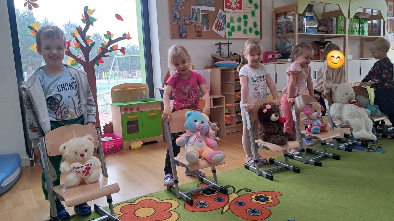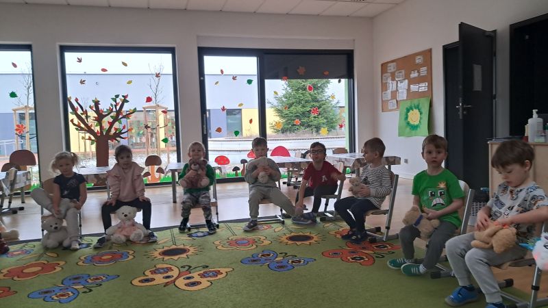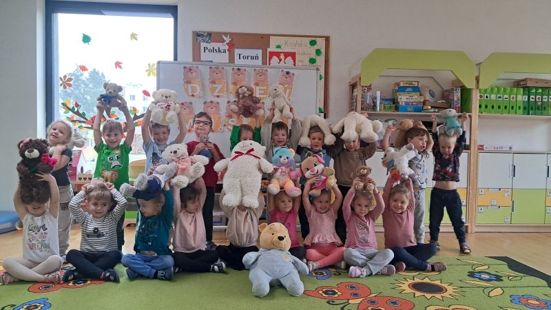 Jedno z ulubionych świąt naszych Żuczków. Święto Pluszowego Misia!! Dzieci poznały historię powstania pierwszej pluszowej zabawki wzorowanej na małym niedźwiadku. Razem ze swoimi pluszakami ćwiczyły i utrwalały pojęcia nad, pod, obok. Były również zabawy matematyczne oraz zabawy plastyczne.
