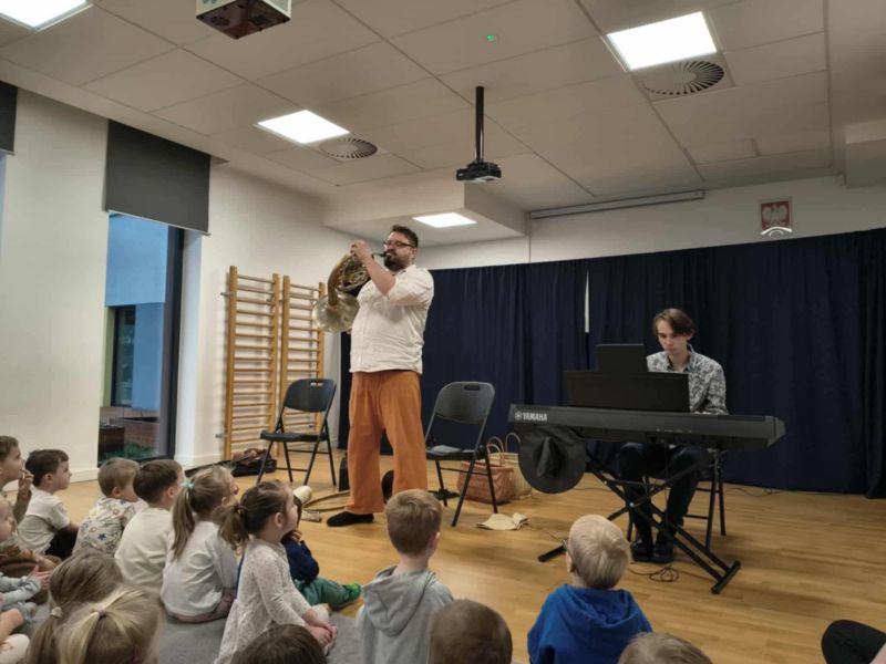 14 listopada nasze przedszkolaki miały okazję uczestniczyć w audycji muzycznej przygotowanej przez Kubica Art Promocja Sztuki. Przy dźwiękach waltorni, altówki i pianina dzieci wysłuchały także legendy o Warsie i Sawie.