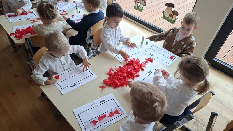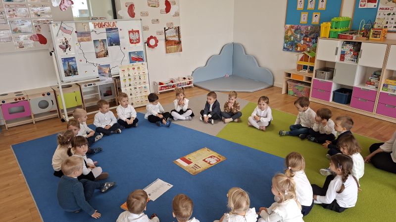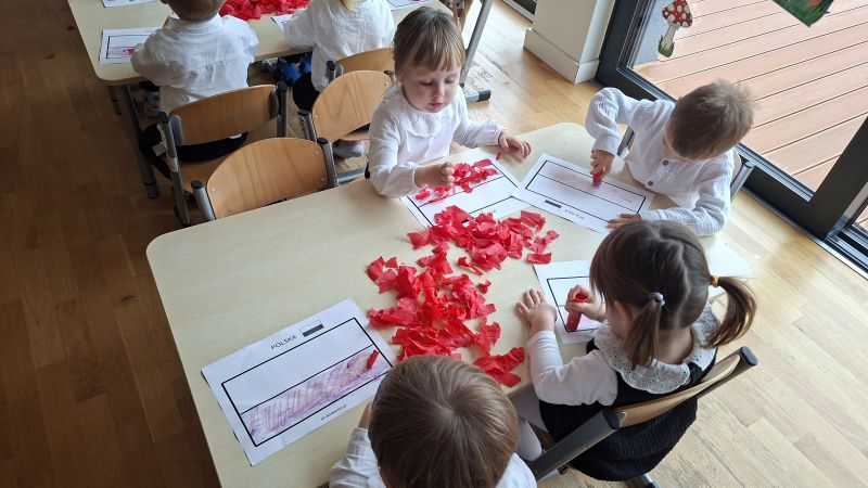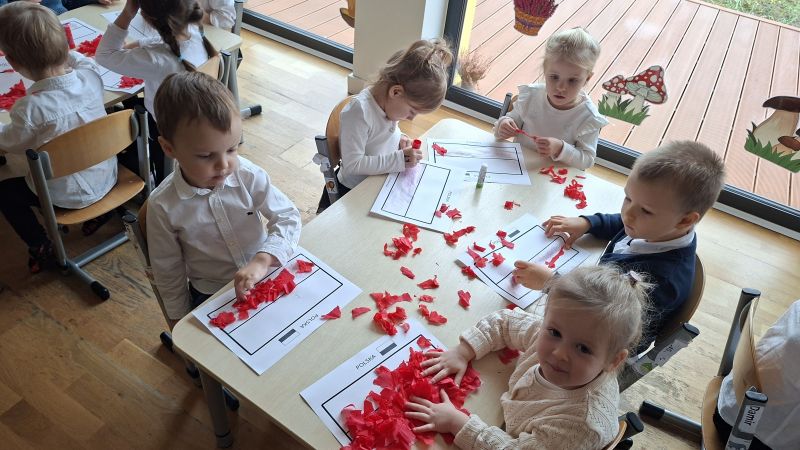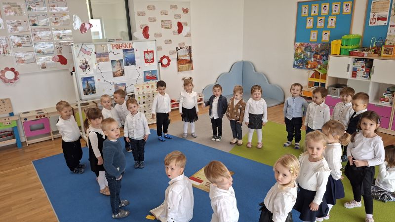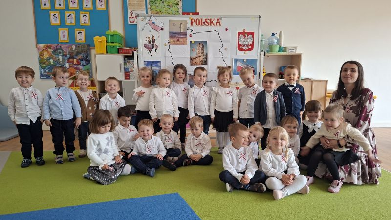 W środę 12.11 w naszym przedszkolu obchodziliśmy Dzień Niepodległości. Dzieci z naszej grupy oglądały i poznawały symbole związane z naszym Państwem, słuchały hymnu Polski oraz wyklejały flagę czerwoną krepą. Z zainteresowaniem oglądały różnież przedstawienie przygotowane przez starszą grupę przedszkolną.