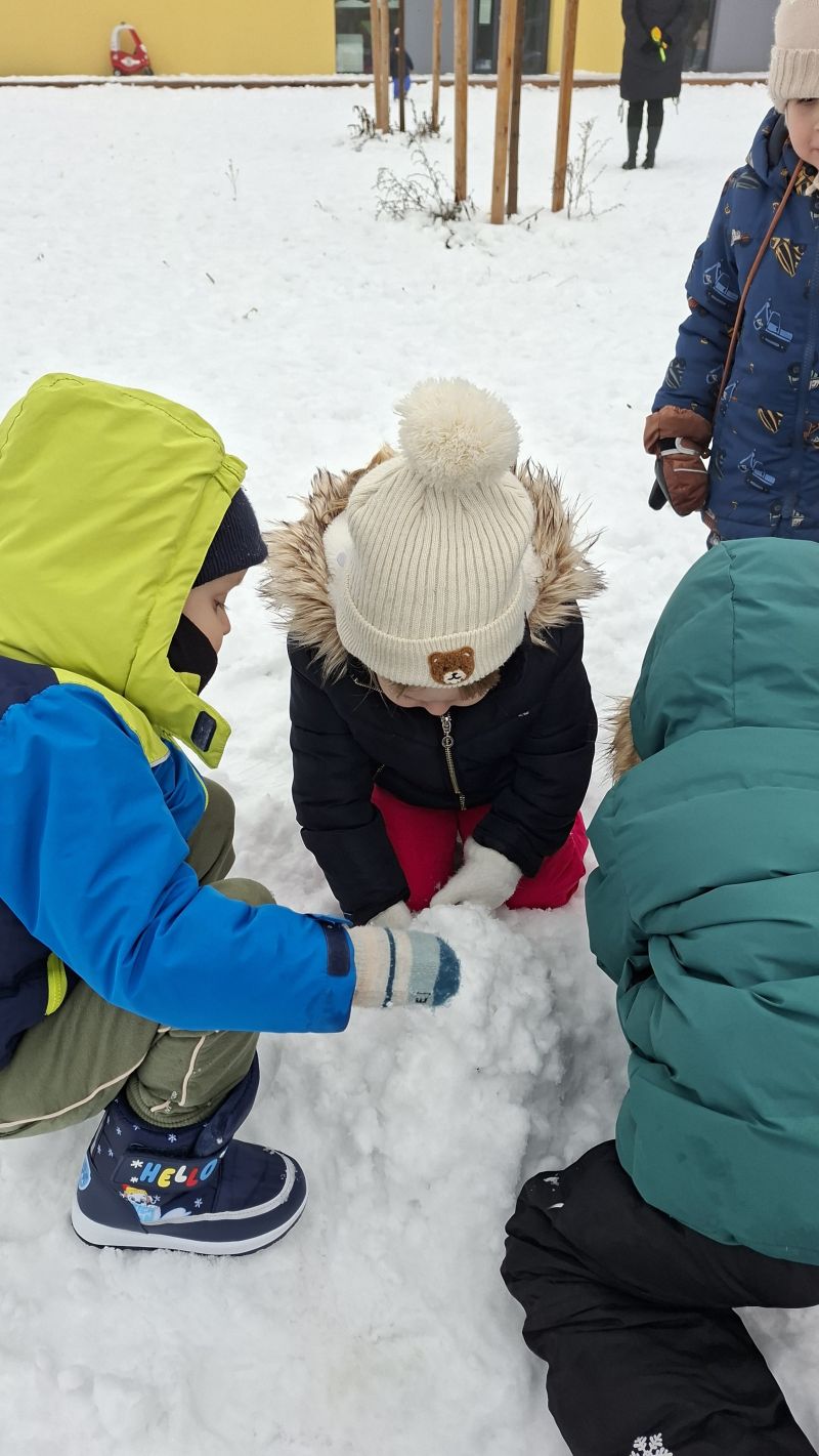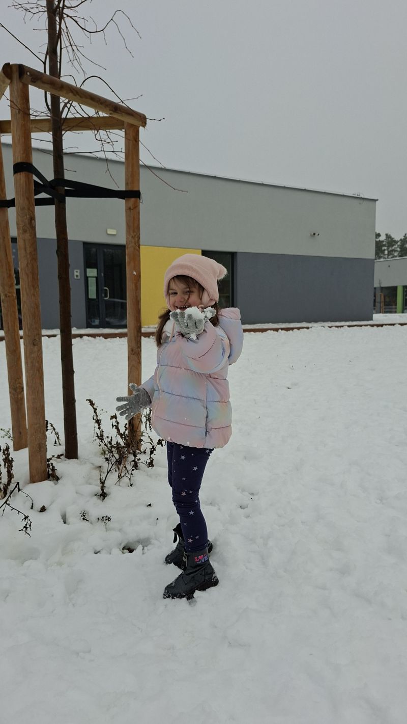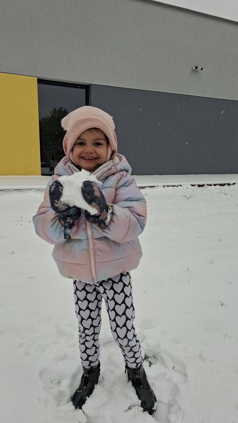 Dzieci z naszej grupy bardzo ucieszyły się z pierwszego śniegu, który spadł w tym roku już jesienią. Dzieci lepiły pierwsze kule śniegowe, powstały pierwsze małe bawałnki, nie zabrakło również trulania się w śniegu.