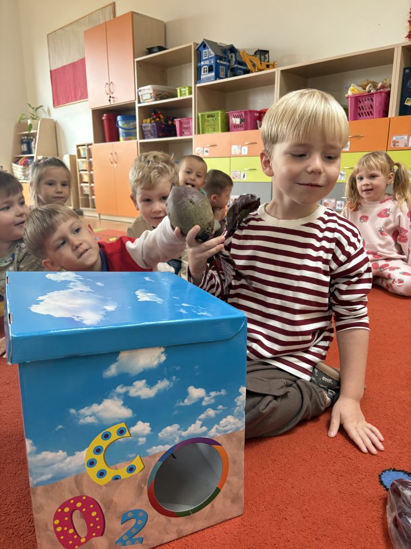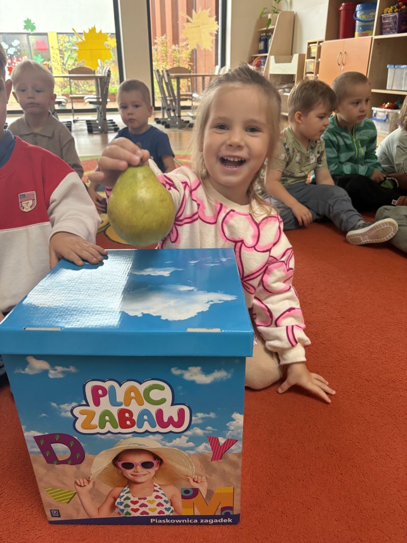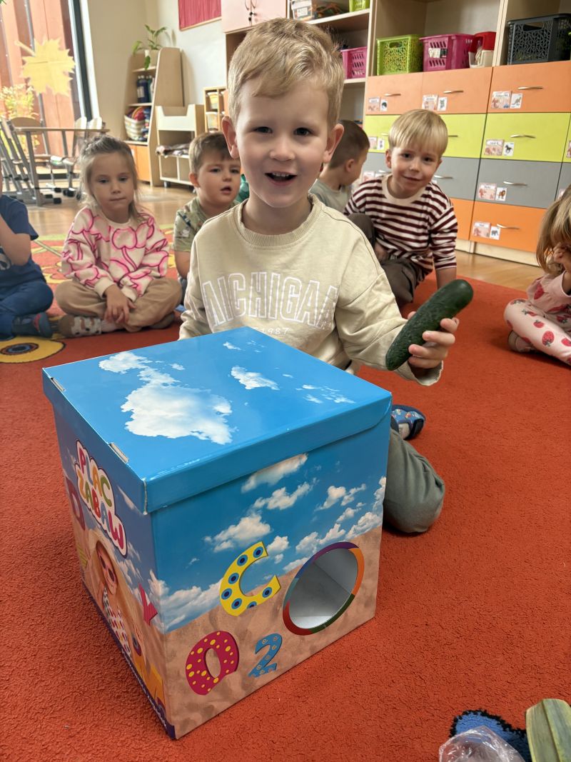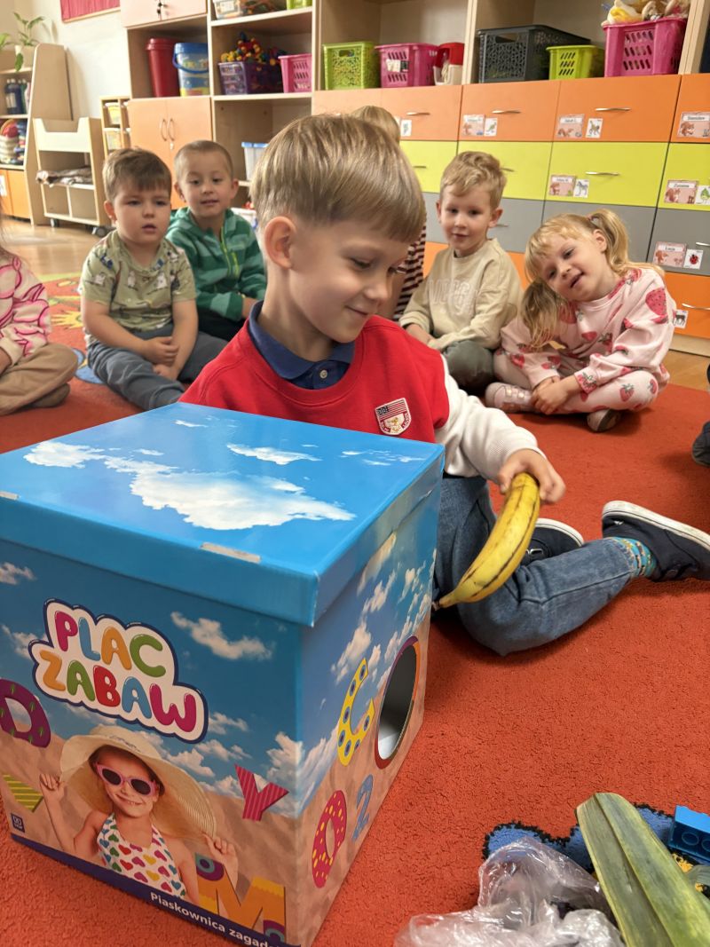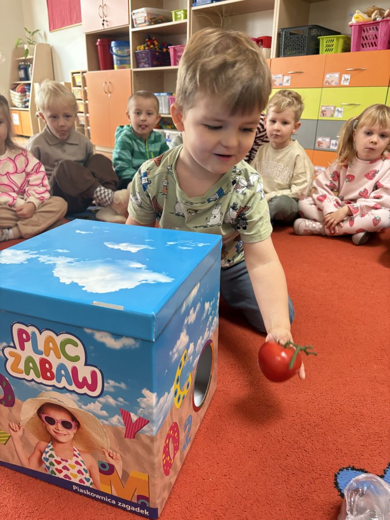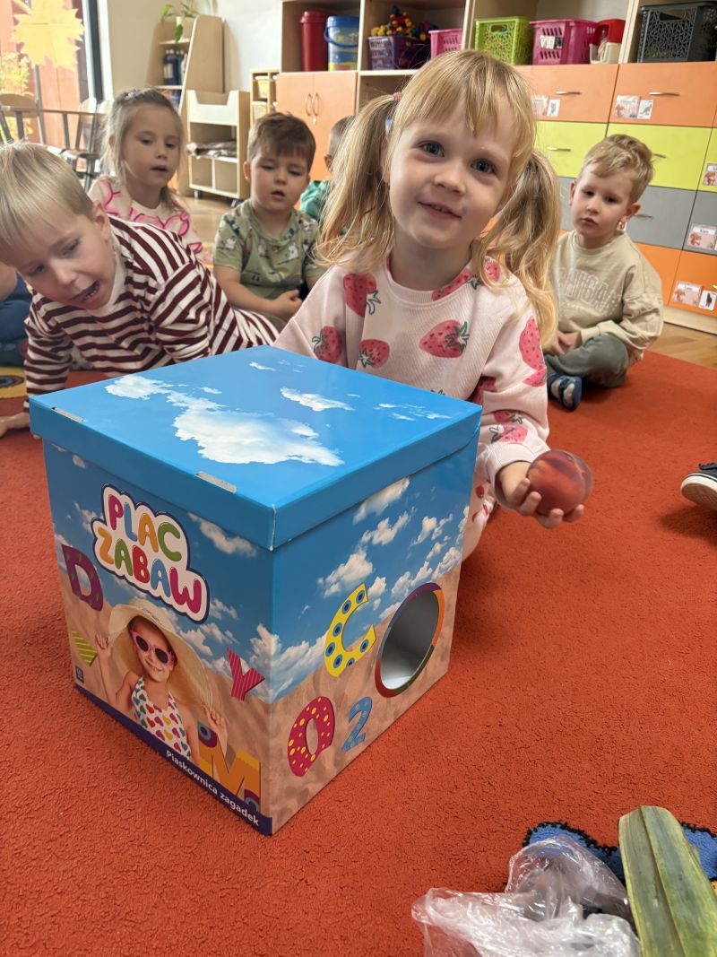 Nasze pociechy podczas Dnia Owoców i Warzyw świetnie się bawiły i uczyły! Rozmawialiśmy o różnych smakowitych i kolorowych owocach oraz warzywach, słuchając wiersza Jana Brzechwy „Na straganie” i oglądając ilustracje. Dzieci miały okazję dotknąć i powąchać prawdziwe owoce i warzywa, poznając ich wygląd, zapach i teksturę. Wspólnie odgadywały, co jest w pudełkach, rozwijając zmysł dotyku i koncentrację. Zabawa zapachowa pozwoliła im jeszcze lepiej poznać aromaty różnych produktów.