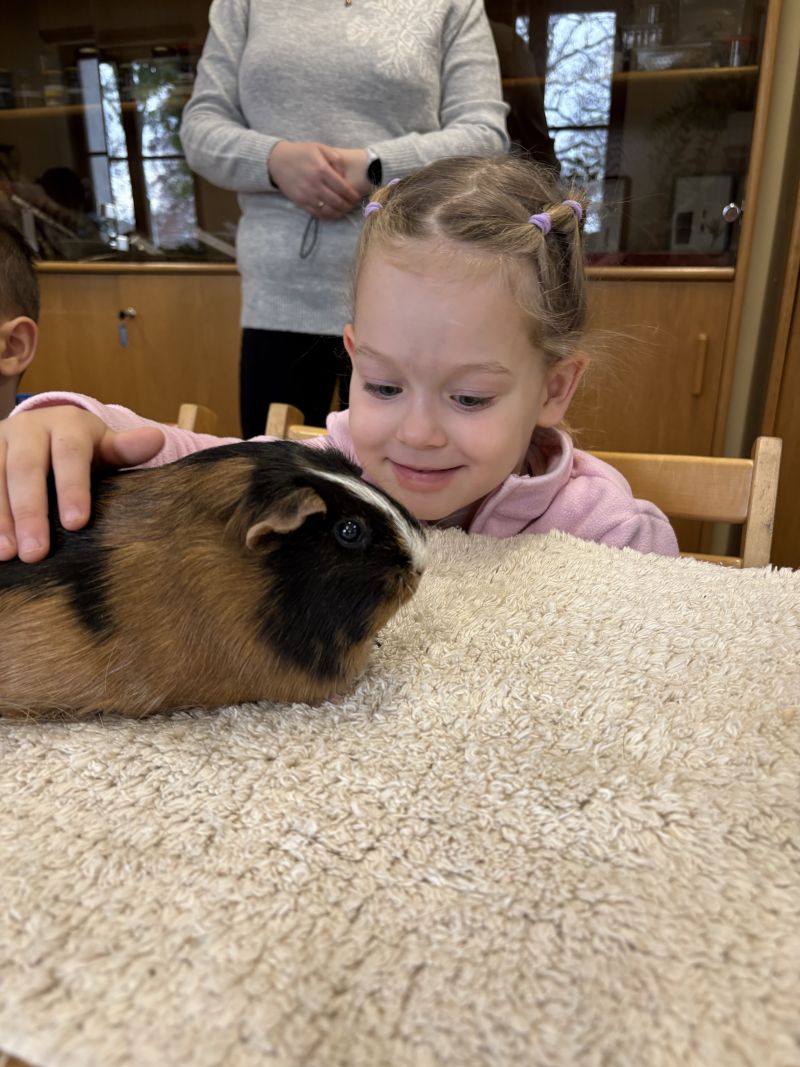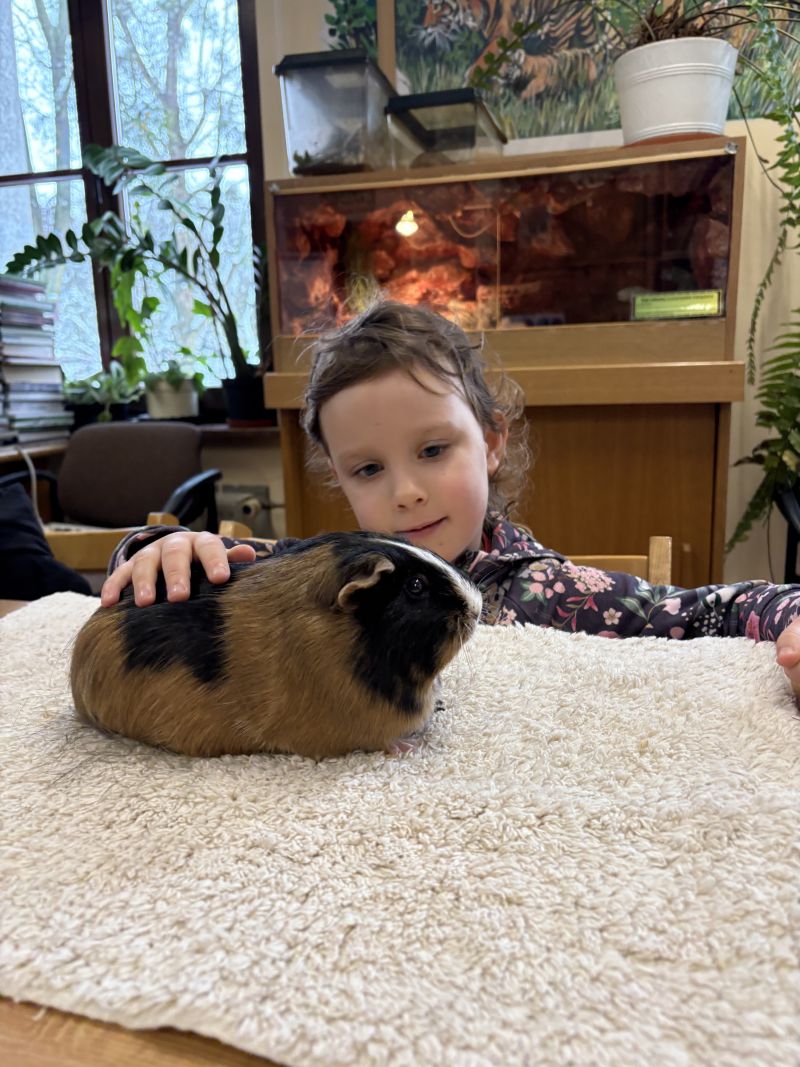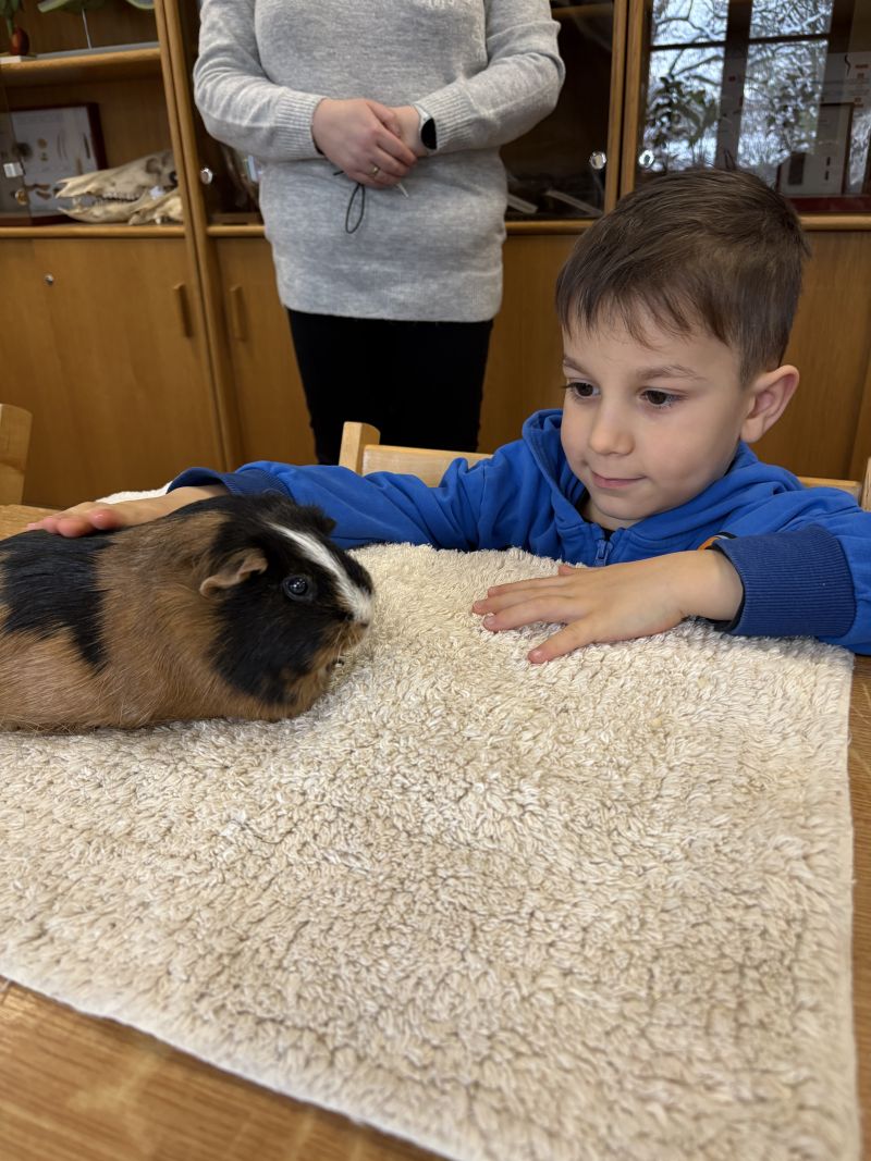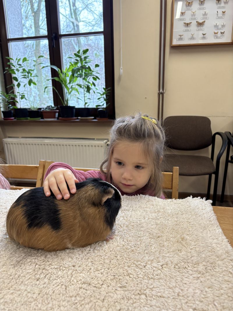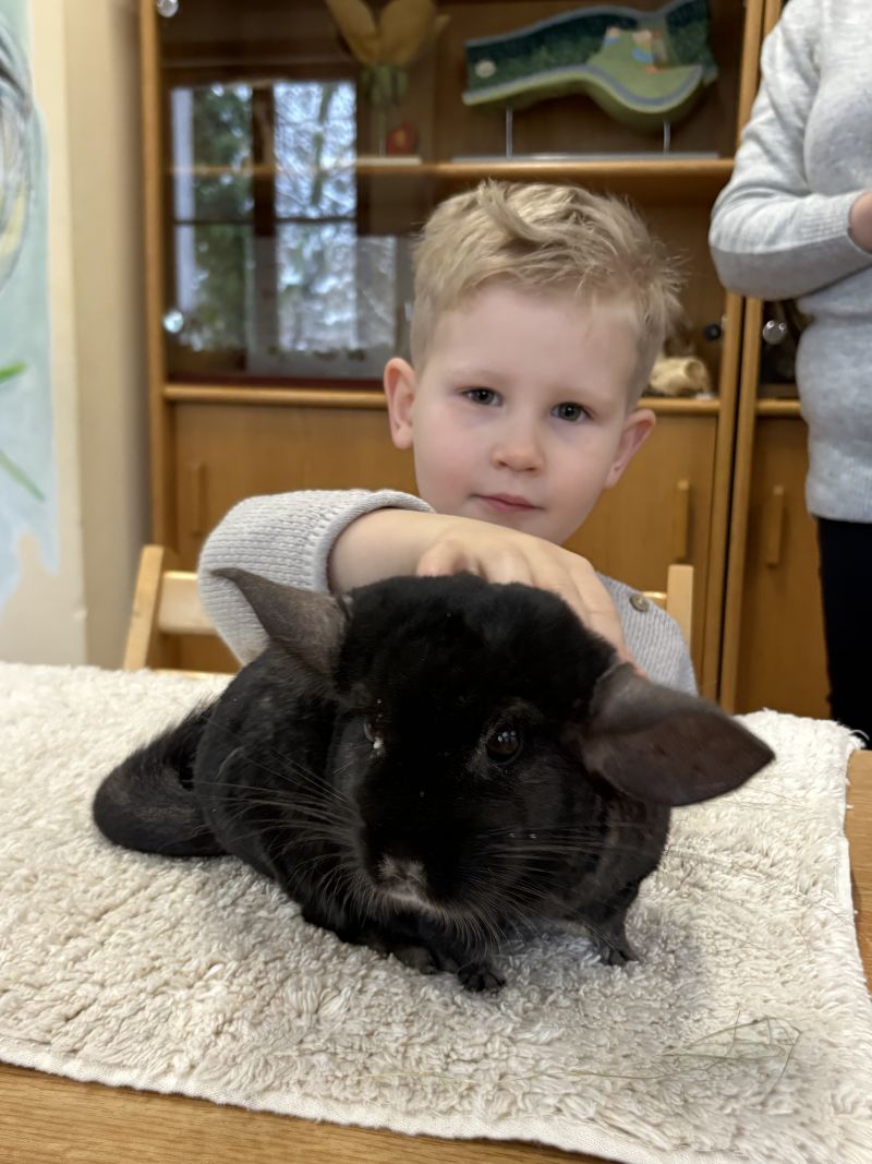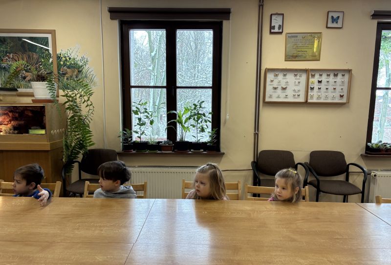 Dnia 27 listopada grupa Wiewiórek udała się na wycieczke do Ogrodu Zoobotanicznego na zajęcia dydaktyczne pt. "Moje domowe ZOO". Podczas zajęć dzieci rozwijały świadomość i umiejętność dbania o zwierzęta domowe poprzez poznanie ich potrzeb i właściwej opieki. Poznały różne zwierząta domowe i ich charakterystyczne cechy. Zrozumiały, jak należy dbać o zwierzęta domowe, aby były zdrowe i szczęśliwe. Rozwijały empatię i troskę wobec zwierząt poprzez bezpośredni kontakt i dotyk (głaskanie świnki morskiej oraz szynszyli, obserwacja i dotykanie ślimaka afrykańskiego oraz patyczaków). Dzieci z ogromnym zaciekawieniem uczestniczyły w zajęciach.