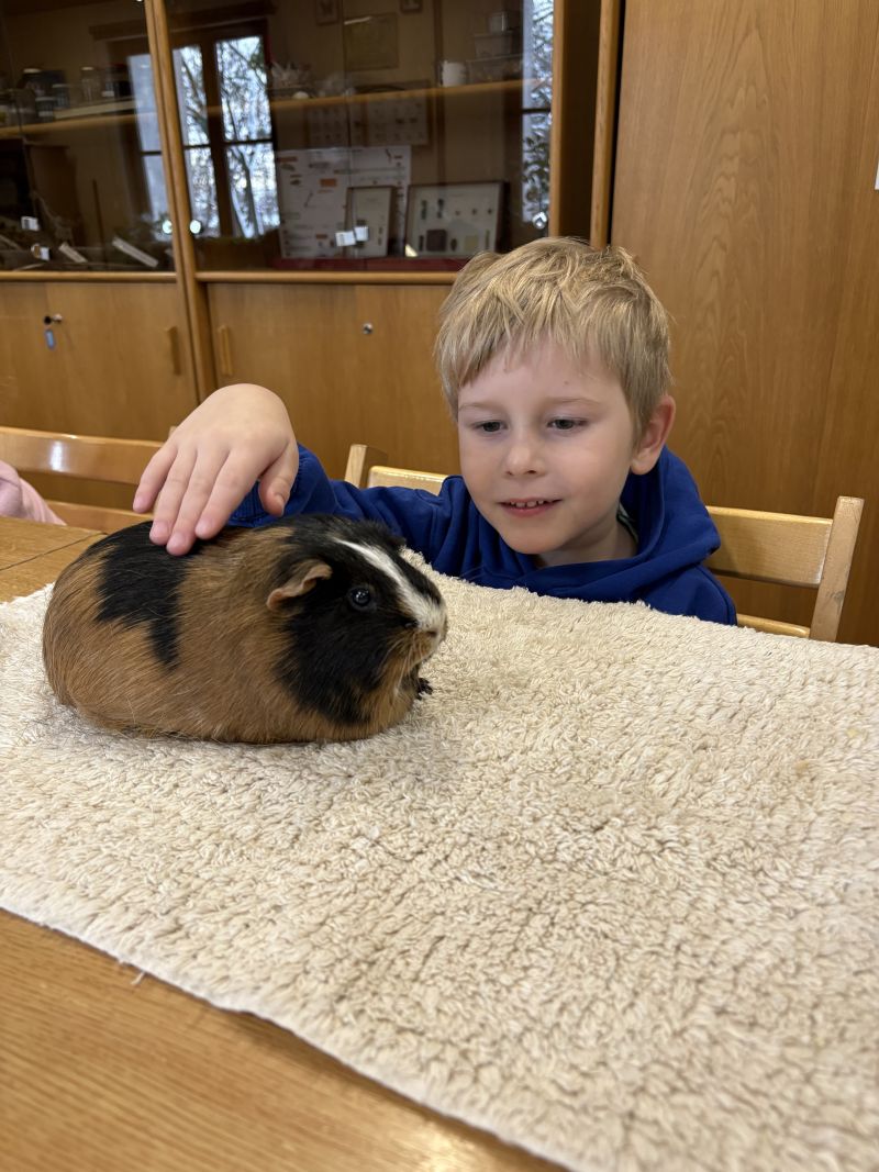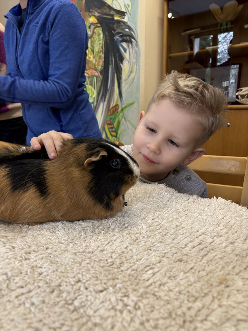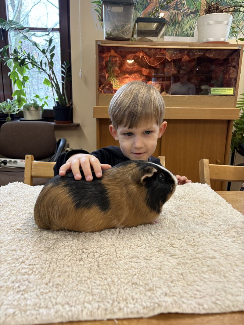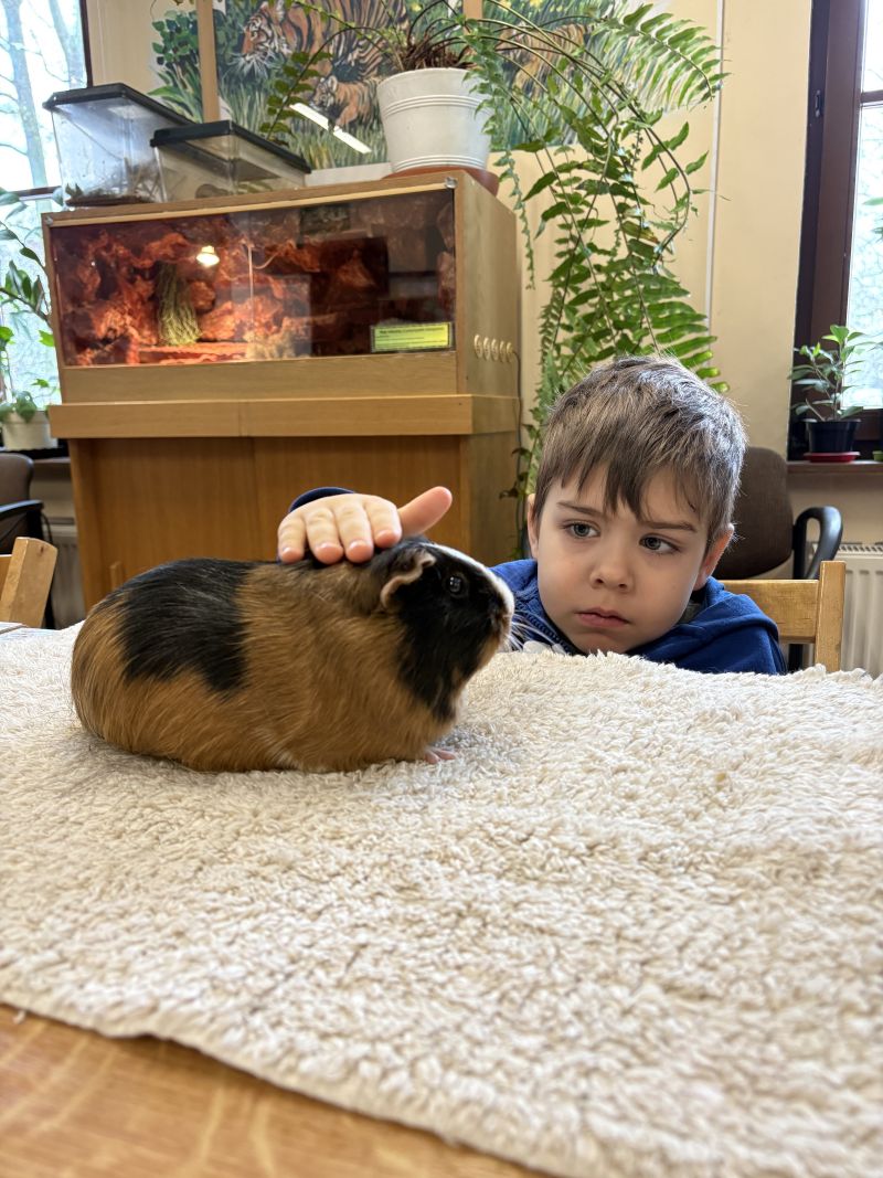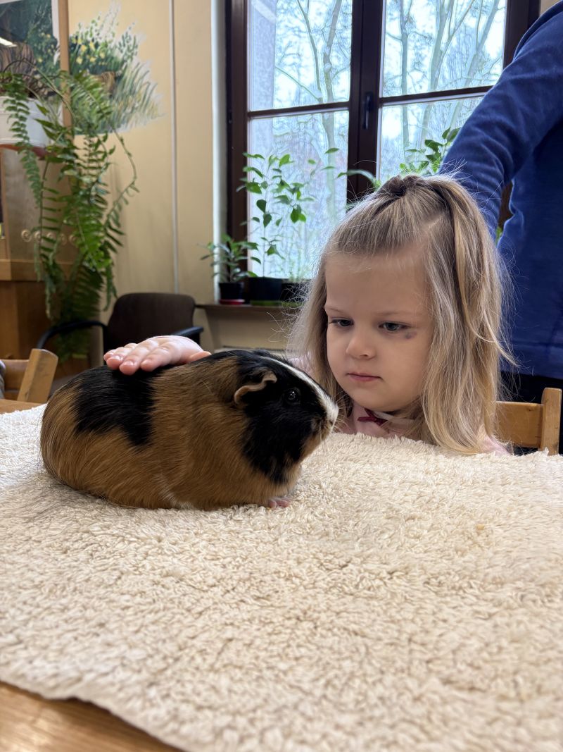 Dnia 27 listopada grupa Wiewiórek udała się na wycieczke do Ogrodu Zoobotanicznego na zajęcia dydaktyczne pt. "Moje domowe ZOO". Podczas zajęć dzieci rozwijały świadomość i umiejętność dbania o zwierzęta domowe poprzez poznanie ich potrzeb i właściwej opieki. Poznały różne zwierząta domowe i ich charakterystyczne cechy. Zrozumiały, jak należy dbać o zwierzęta domowe, aby były zdrowe i szczęśliwe. Rozwijały empatię i troskę wobec zwierząt poprzez bezpośredni kontakt i dotyk (głaskanie świnki morskiej oraz szynszyli, obserwacja i dotykanie ślimaka afrykańskiego oraz patyczaków). Dzieci z ogromnym zaciekawieniem uczestniczyły w zajęciach.
