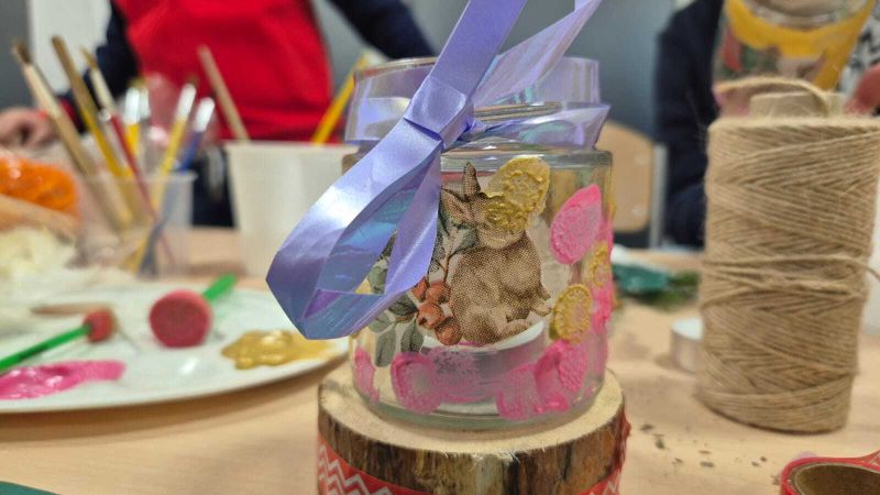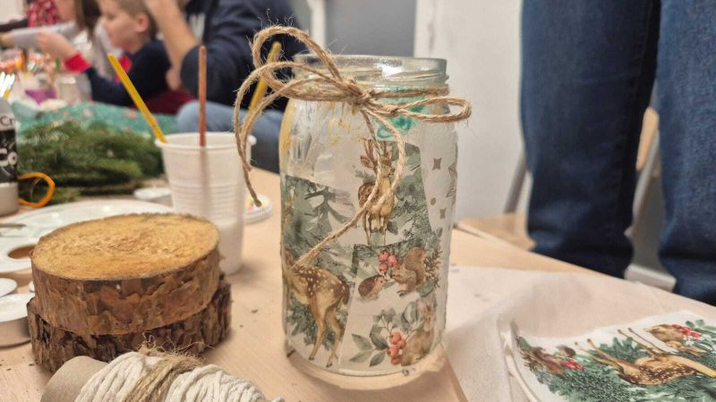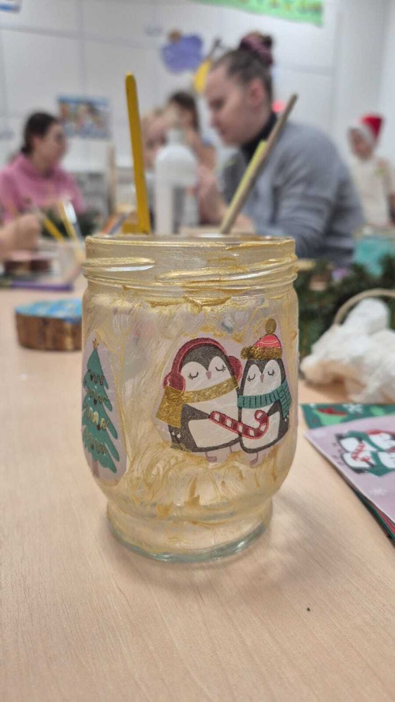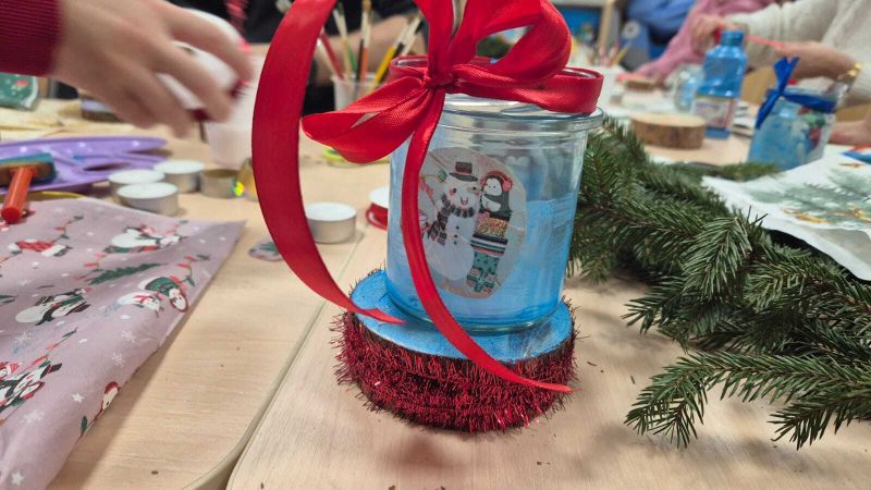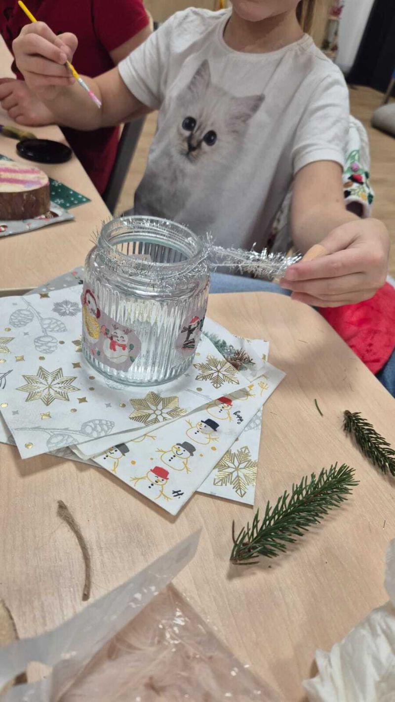 Na warsztatach świątecznych, dzieci z grupy Kreciki wraz ze swoimi rodzicami, wykonały piękne świeczniki na wigililny stół