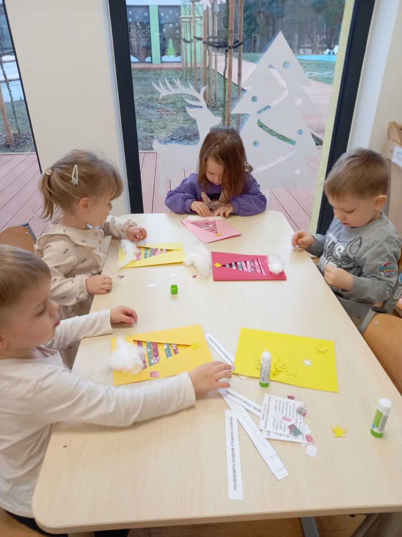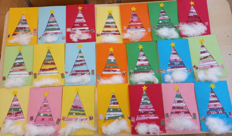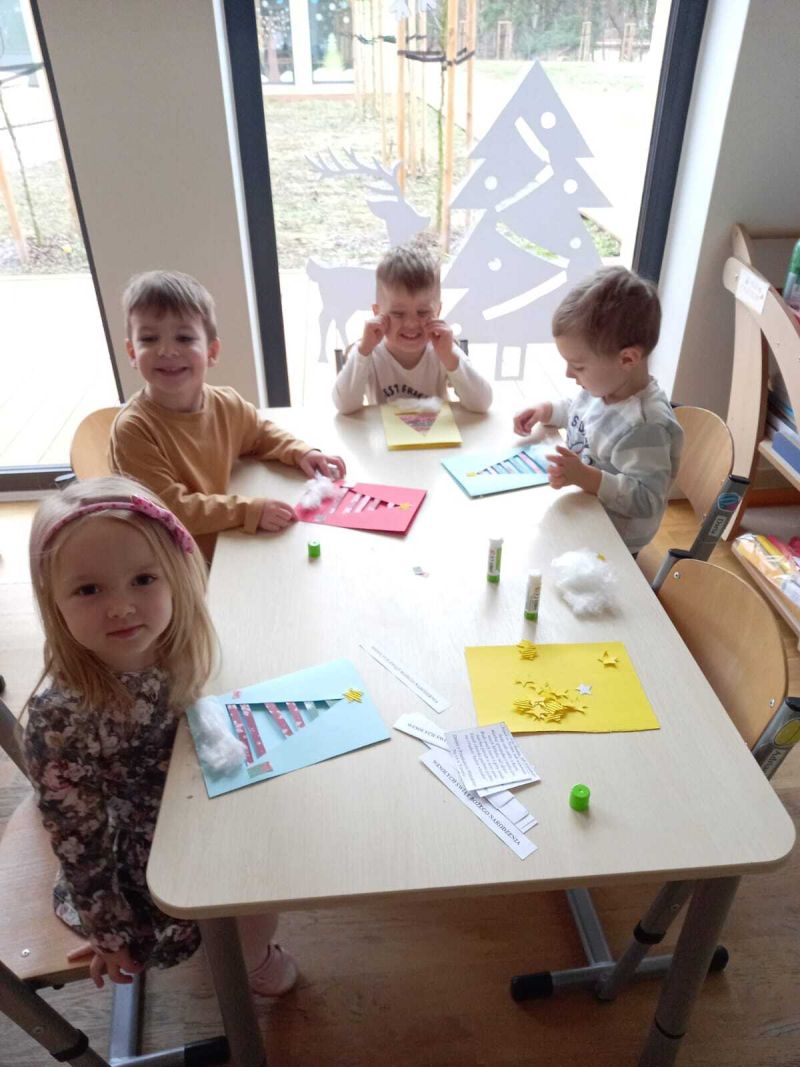 Kartki świąteczne Żabki wykonały świąteczne kartki dla seniorów z Centrum Wielu Pokoleń. Dzieci z radością i wielkim sercem przygotowały kartki, by sprawić seniorom świąteczną radość