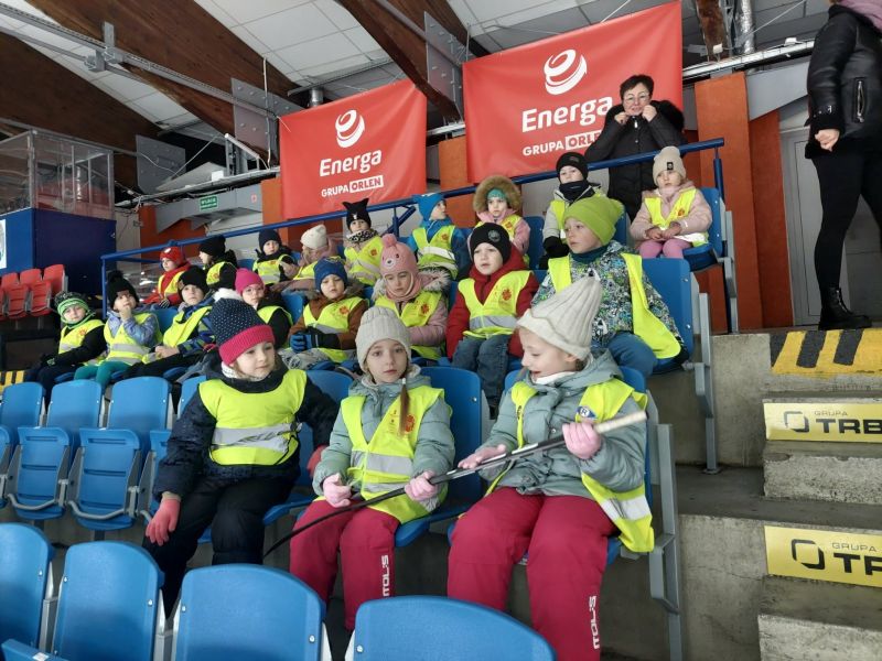 Wycieczka na lodowisko Tor- Tor Dnia 16.12.2025 grupa Ważki wybrała się na lodowisko Tor- Tor w Toruniu obejrzeć trening hokeja.