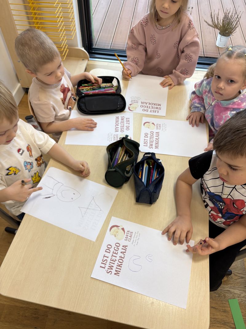 Wiewiórki postanowiły napisać list do Świętego Mikołaja. Dzieci pisały je z wielkim zaangażowaniem. Z radością i odrobiną magii tworzyły swoje wymarzone życzenia, marząc o prezentach i świątecznej atmosferze.