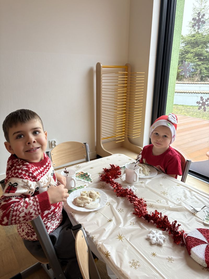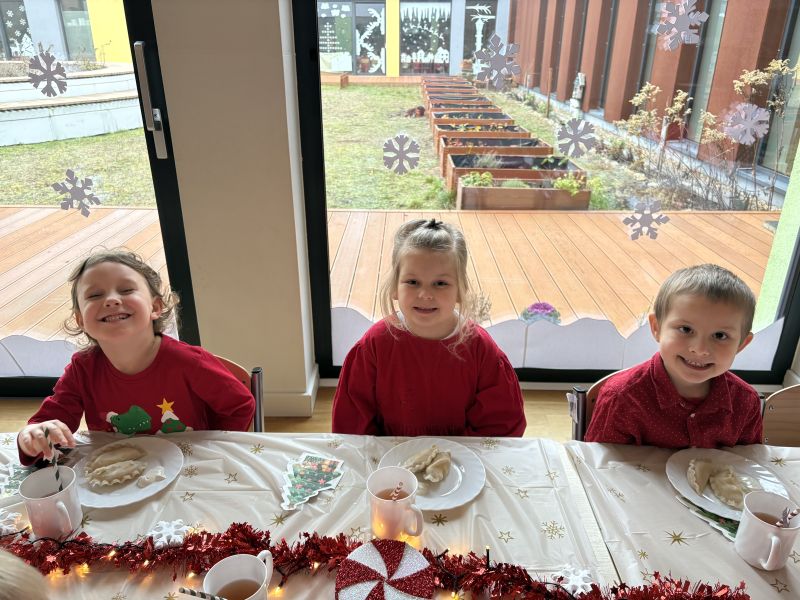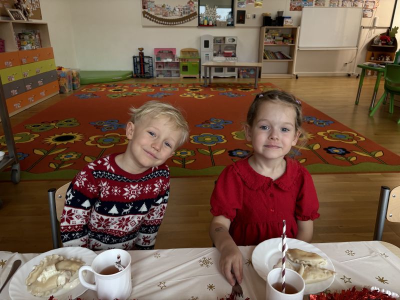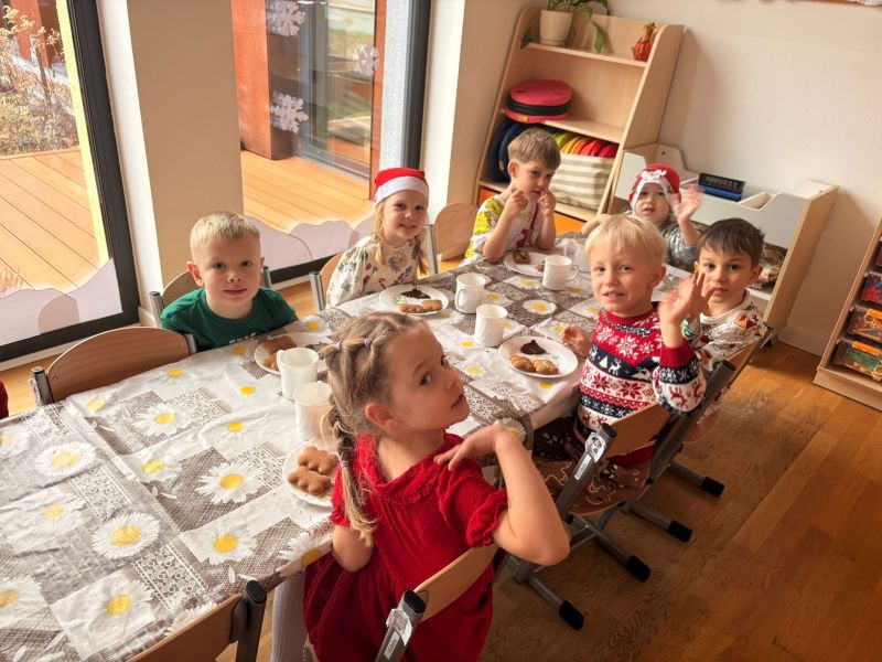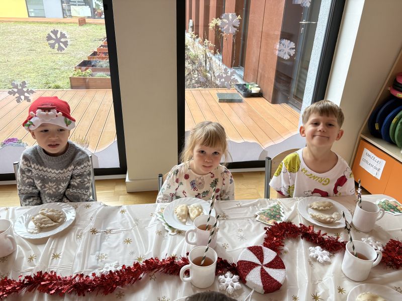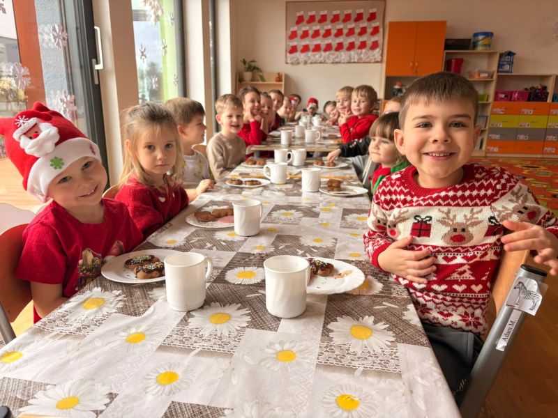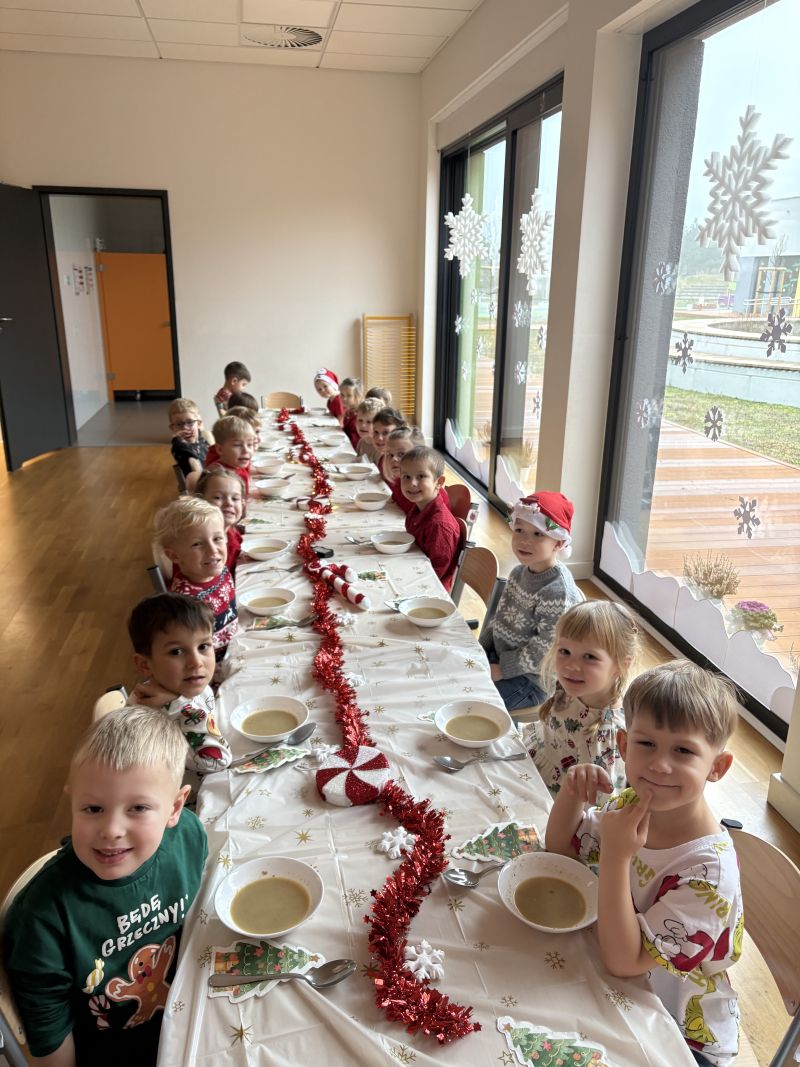 18 grudnia 2025 roku w naszej grupie Wiewiórek zorganizowaliśmy wyjątkową wspólną wigilię grupową! Dzieci z radością usiadły przy wspólnym stole. W atmosferze radości i wzajemnej życzliwości spędziliśmy ten magiczny czas, śpiewając świąteczne piosenki i wspólnie rozmawiając.