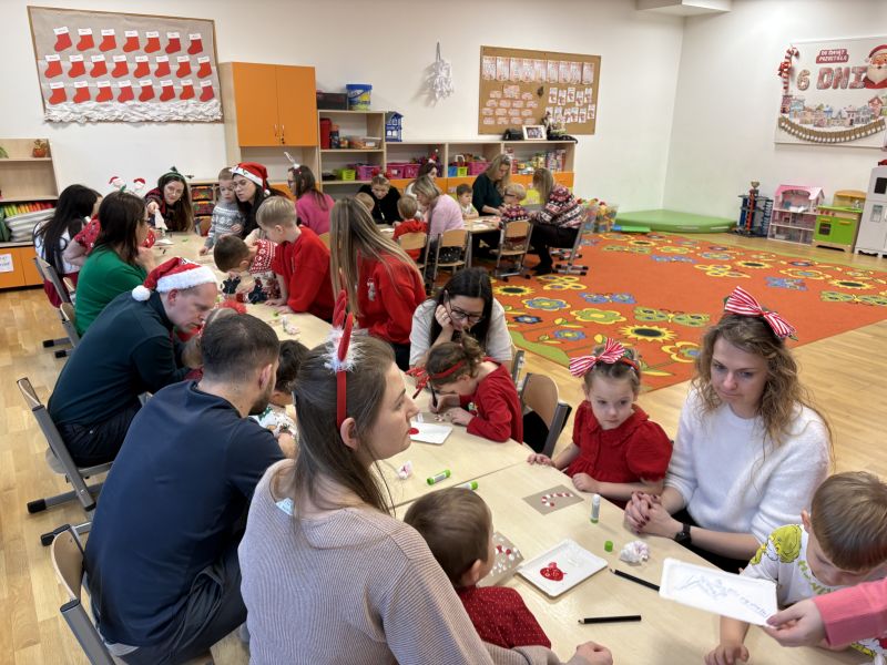 18 grudnia 2025 roku w naszej grupie Wiewiórek odbyły się wyjątkowe warsztaty świąteczne z udziałem rodziców i dzieci! To był magiczny czas, kiedy wspólnie tworzyliśmy piękne, własnoręcznie wykonane kartki świąteczne. Dzieci z radością i zaangażowaniem dzieliły się świąteczną atmosferą z rodzicami.