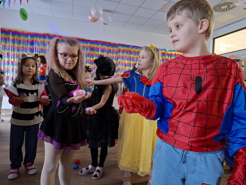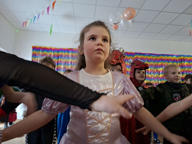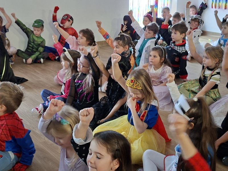 Bal karnawałowy cz. 1 W piątek na naszym przedszkolnym korytarzu zrobiło się bardzo kolorowo. A wszystko to, za sprawą karnawałowych dekoracji i balu, na którym nie zabrakło tańców i dobrej zabawy.