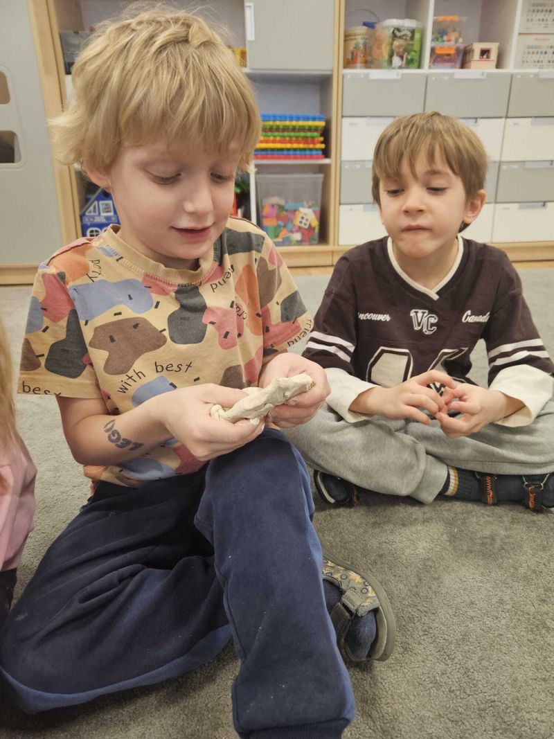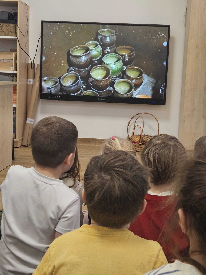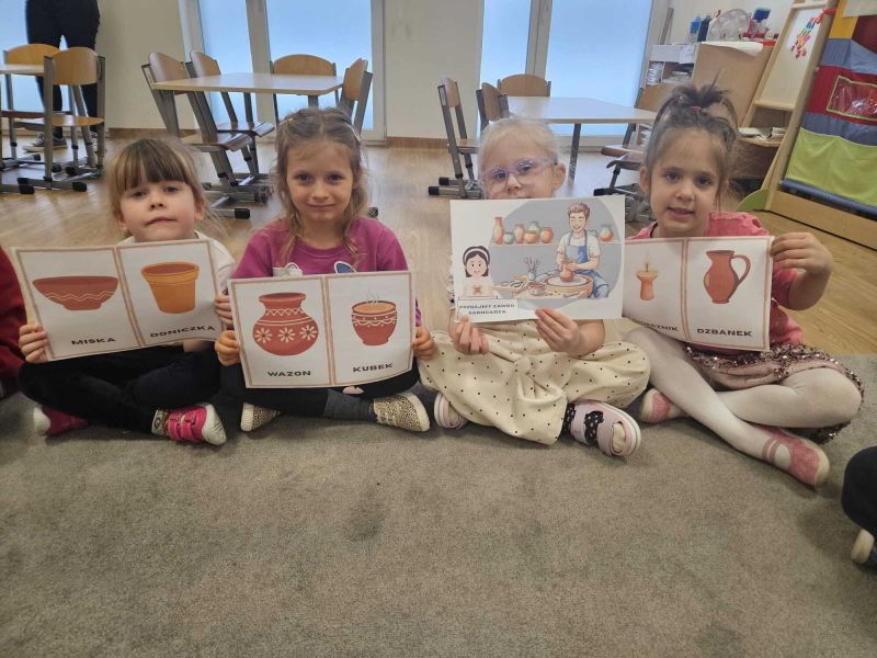 Podczas zajęć dzieci zapoznały się z zawodem garncarza oraz procesem powstawania naczyń z gliny. Przedszkolaki rozwijały sprawność manualną i koordynację ruchową, lepiąc i ozdabiając własne gliniane wyroby.