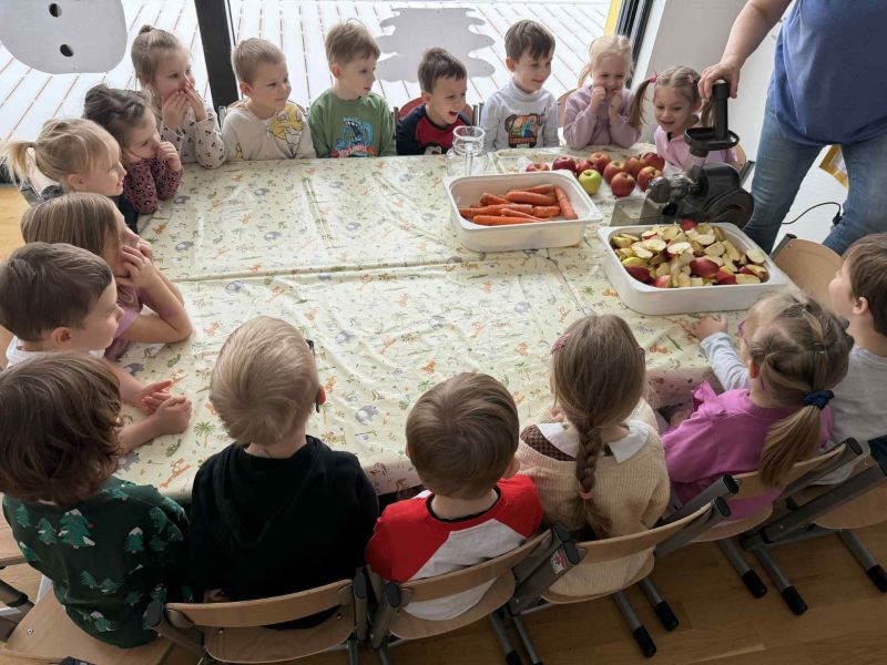 Dbamy o swoje zdrowie (zajęcia luty) W tym tygodniu kształtowaliśmy postawę prozdrowotną, dowiedzieliśmy się dlaczego należy dbać o higienę osobistą i estetyczny wygląd, poznaliśmy piramidę żywienia i wykonaliśmy własny sok!