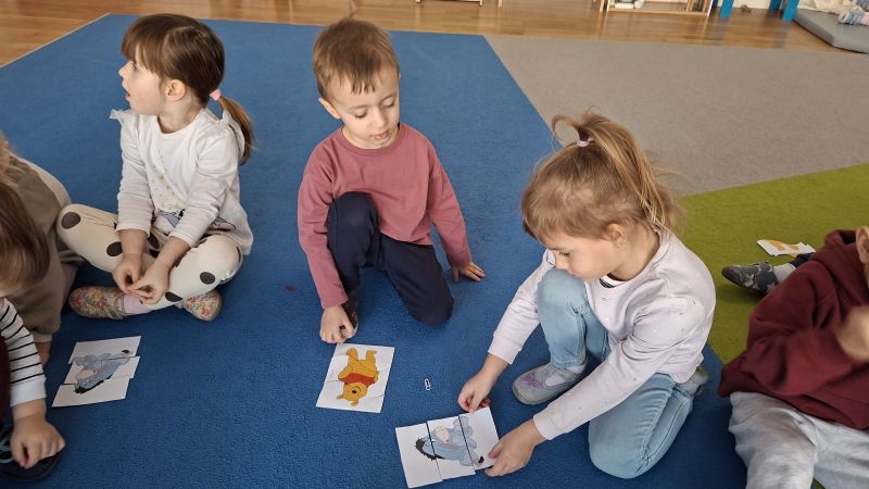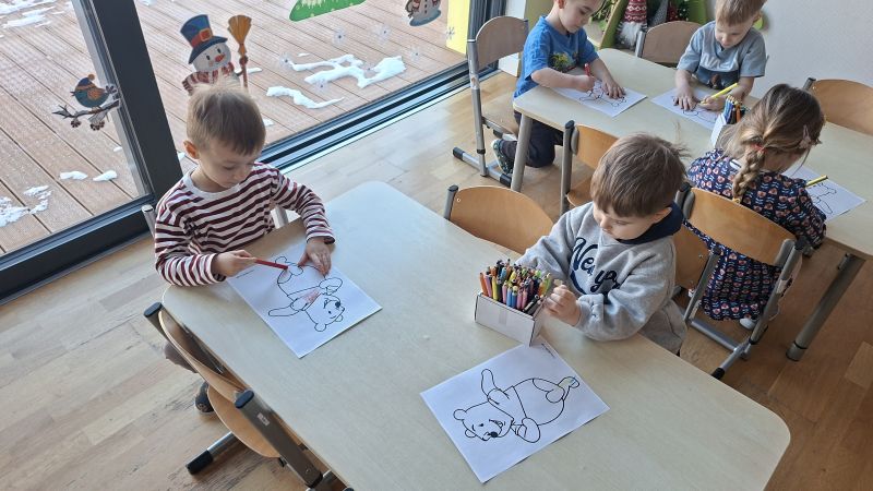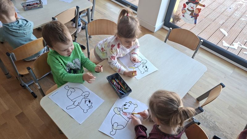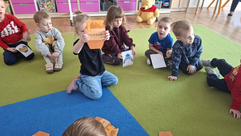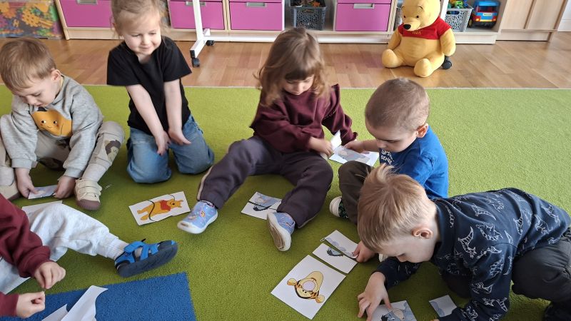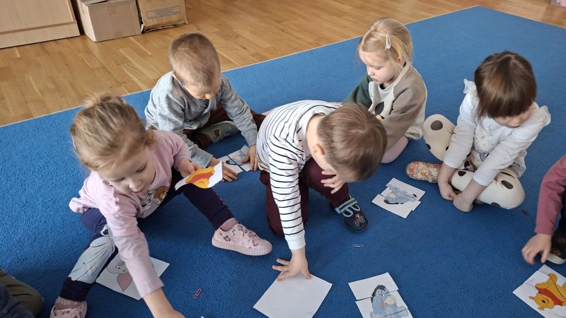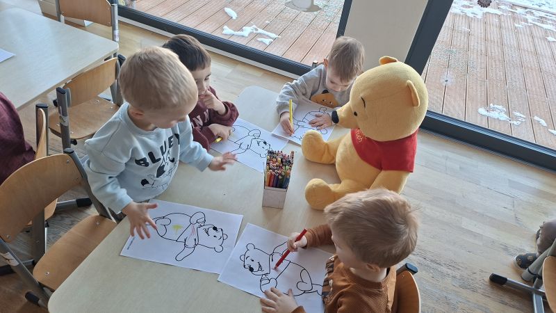 W naszej grupie w styczniu obchodziliśmy Dzień Kubusia Puchatka. Dzieci tego dnia miały wiele ciekawych aktywności związanych z bardzo sympatycznym misiem. Kolorowały Kubusia Puchatka, układały obrazek z trzech części oraz układały baryłki miodu od najmniejszej do największej. Na zakończenie dzieci tańczyły do utworów związanych ze Stumilowym Lasem.