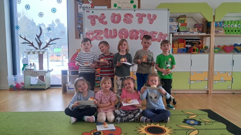 Tłusty czwartek Słodkie święto!! Zapoznaliśmy się z tradycjami tłustego czwartku. Nie zabrakło zabaw ruchowych i tych na spostrzegawczość.