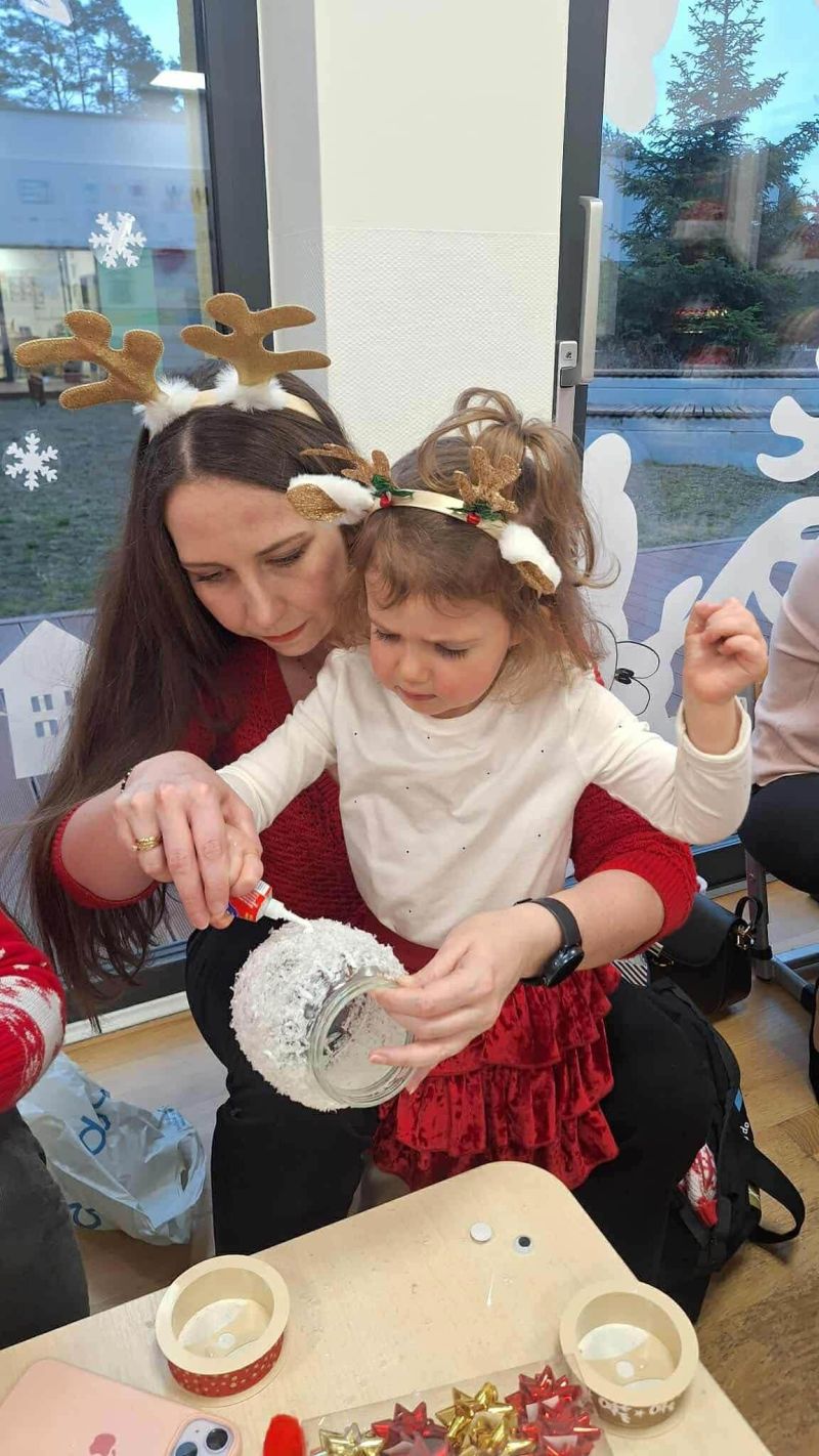 W ten dzień zaprosiliśmy rodziców do wspólnej zabawy! Najpierw mieliśmy okazję zaprezentować nasz występ i zaśpiewać rodzicom piosenkę, a następnie razem z nimi tworzyliśmy ozdobne reniferkowe lampiony. Wszystko to otulała przytulna, rodzinna atmosfera.