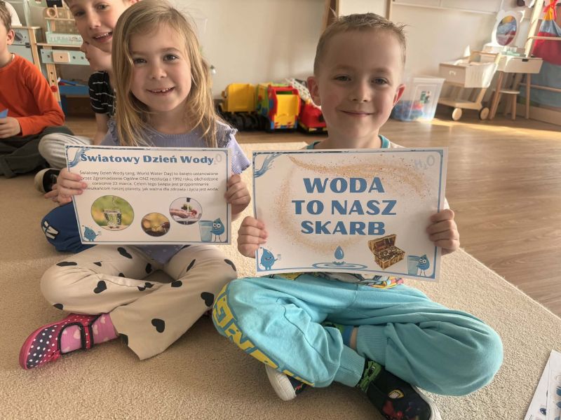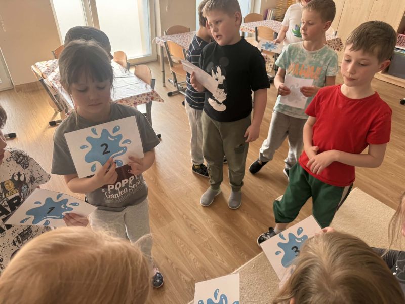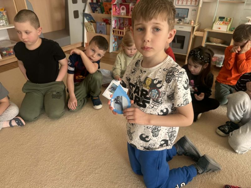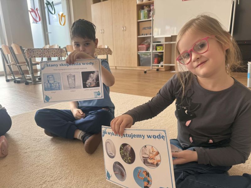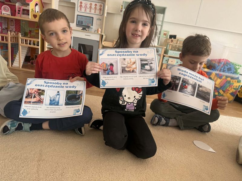 Podczas zajęć dzieci dowiedziały się: skąd bierze się woda, dlaczego należy ją oszczędzać, jak możemy dbać o środowisko każdego dnia.
