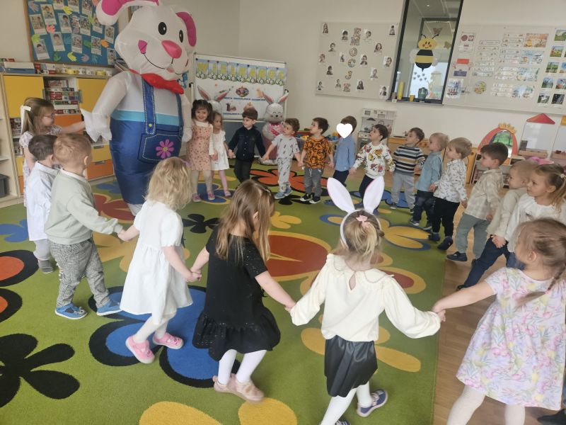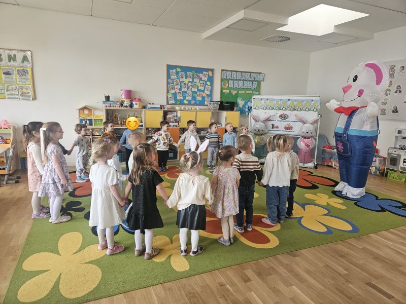 Największą niespodzianką była wizyta wyjątkowego gościa – Zajączka Wielkanocnego, który sprawił dzieciom ogromną radość i wywołał wiele uśmiechów! 🐰✨