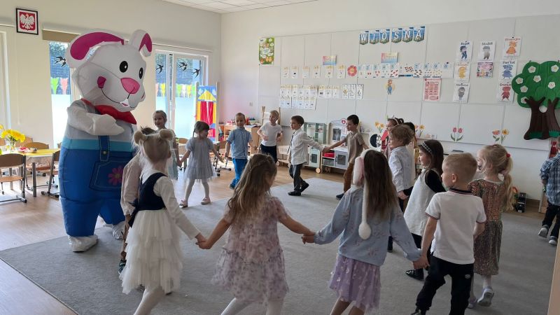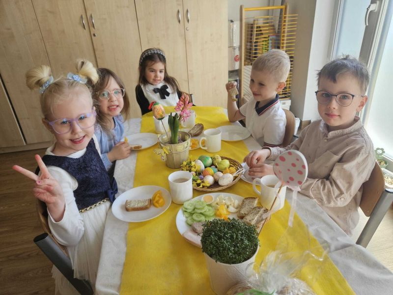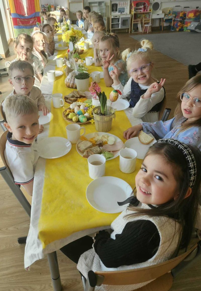 Poniedziałek Wielkanocny W poniedziałek, 30 marca, w naszym przedszkolu świętowaliśmy wyjątkowy, wielkanocny dzień. Dzieci wspólnie zasiadły do świątecznego śniadania, a największą niespodzianką była wizyta Zajączka Wielkanocnego. Towarzyszyło nam dużo uśmiechu i radości.