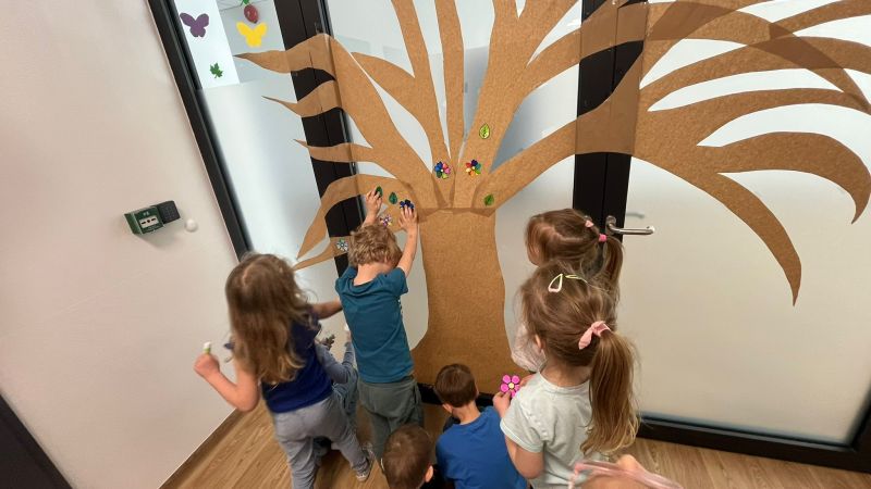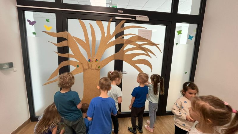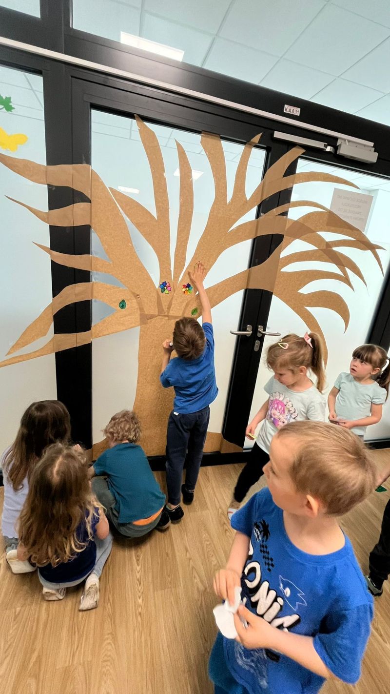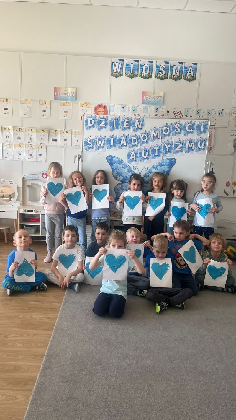 Dzieci aktywnie uczestniczyły w zajęciach, podczas których rozmawialiśmy o empatii, zrozumieniu i akceptacji. Wykonały piękne niebieskie serca oraz kolorowe listki, którymi wspólnie ozdobiliśmy nasze drzewo – symbol jedności i różnorodności.